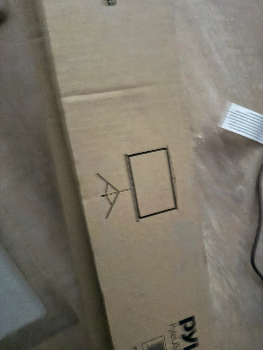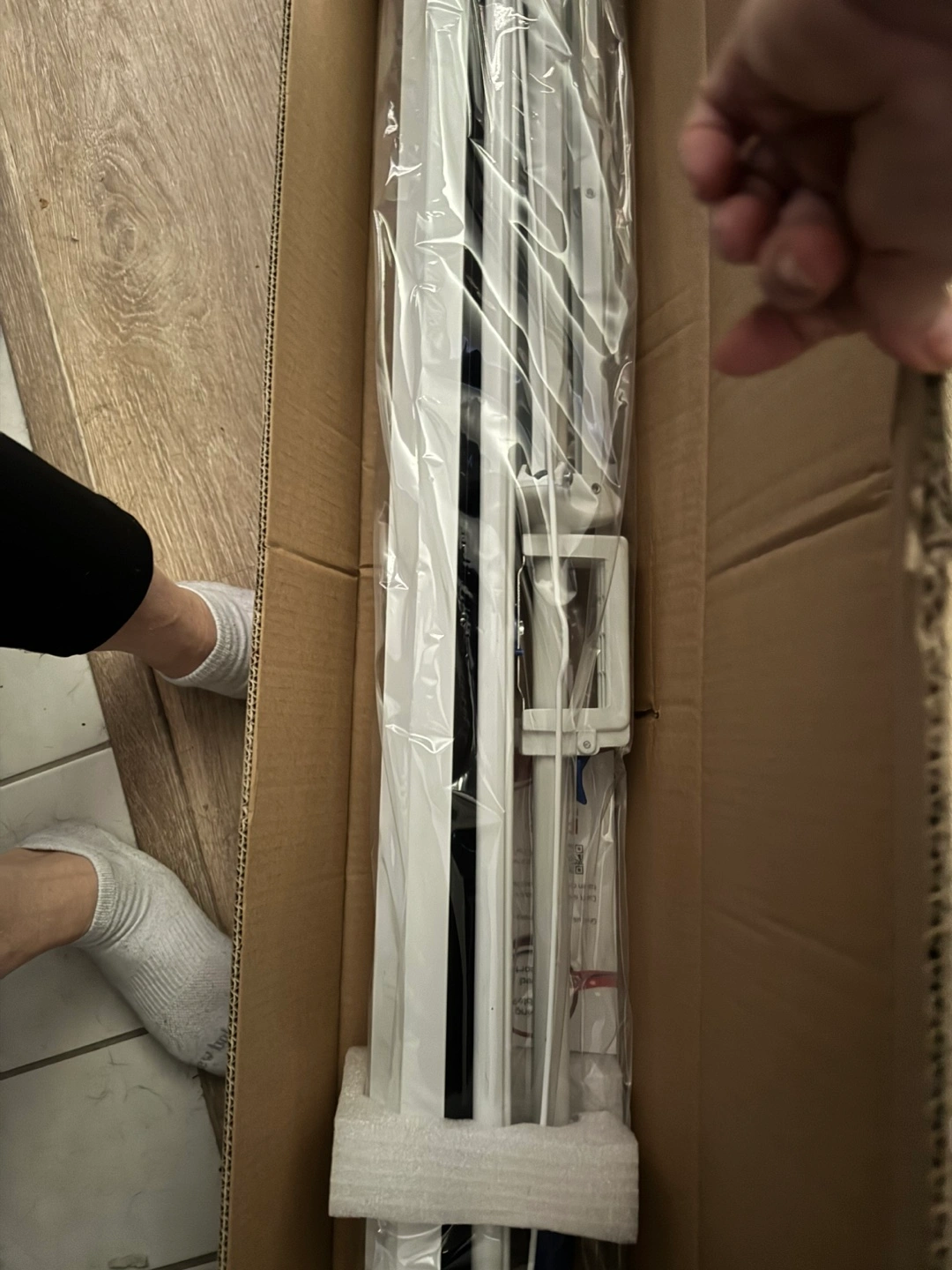 Projector screen in the original packaging. It is a full-size screen with a stand. A perfect addition for a chill movie night in your home.