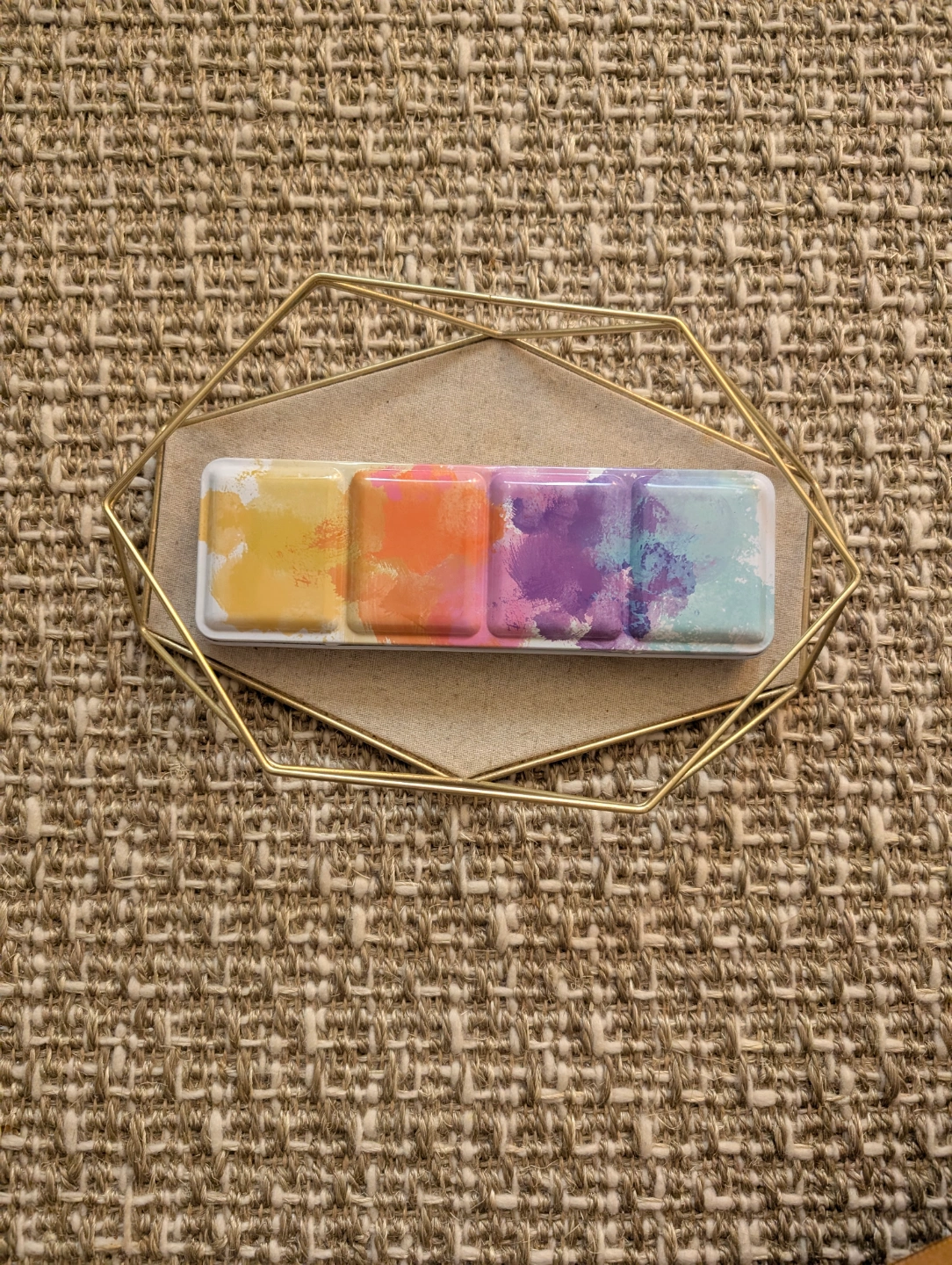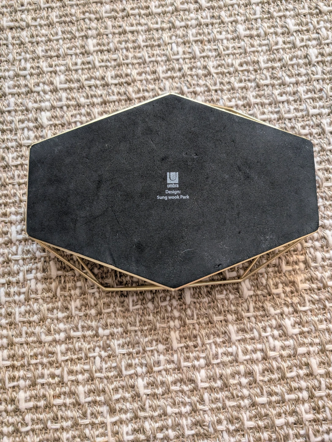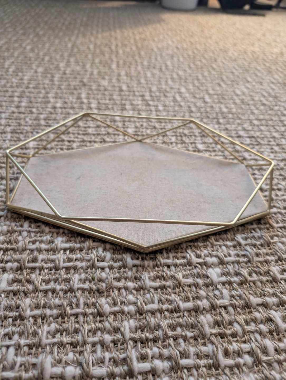 103Geometric design tray with a metal frame. Features a beige tray insert. Can be used to decorate your space in a modern style.