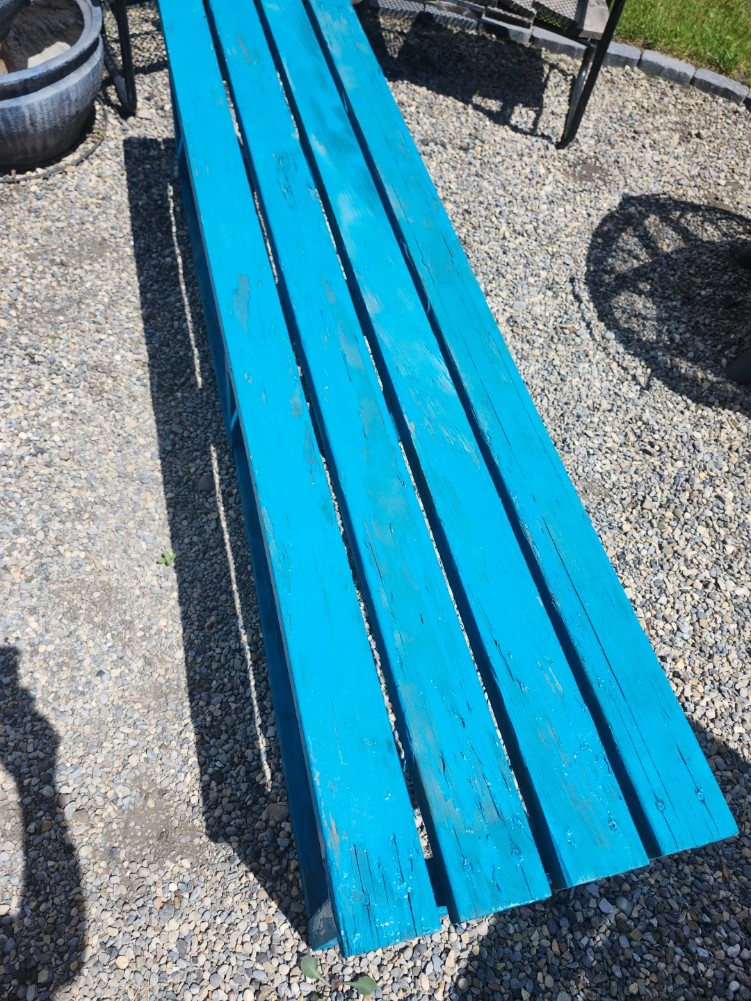 Bright blue outdoor bench
