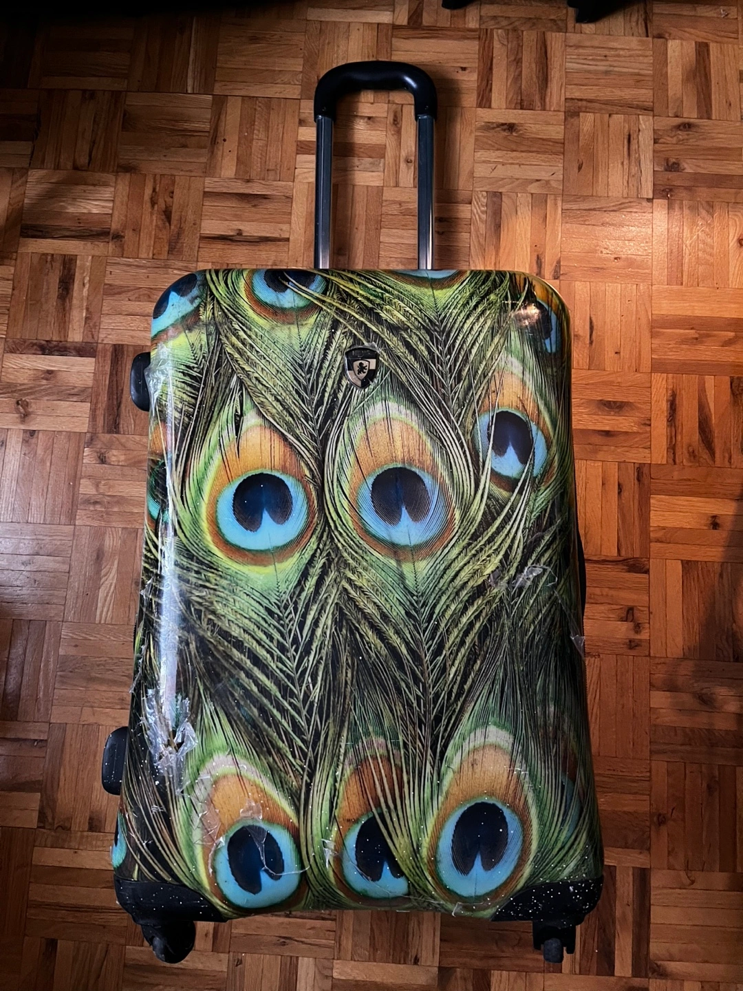 1000+💚hardshell suitcase with retractable handle and a combination lock for security. 💚22” tall 💚spinner wheels, zippers and handle in good condition No rips or damage Pick up only, no holds Cash only
