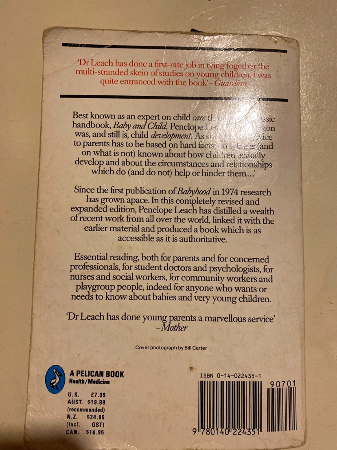 108Book featuring a baby on the cover. Includes text by Penelope Leach. A good read for parents.