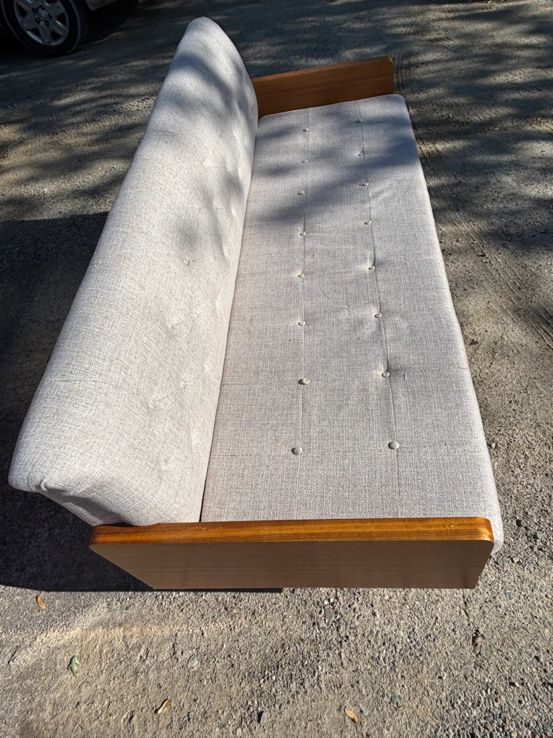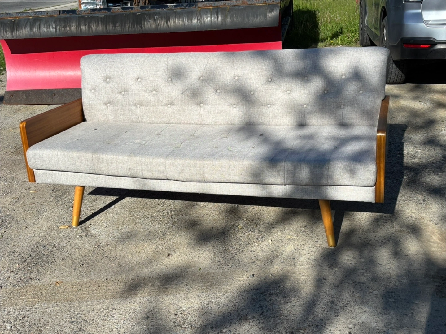 Mid-century modern sofa in really good condition! Some buttons starting to pull, can easily be fixed or can add new cushions!