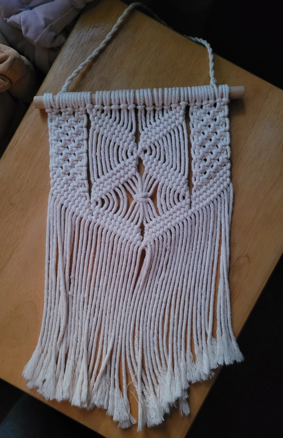 Handmade macrame wall decor. Features a wooden dowel at the top. Textured knotting patterns create a unique design. It can be a beautiful addition to your living space, perfect for creating a peaceful atmosphere. Perfect condition, just doesn't fit my style anymore.