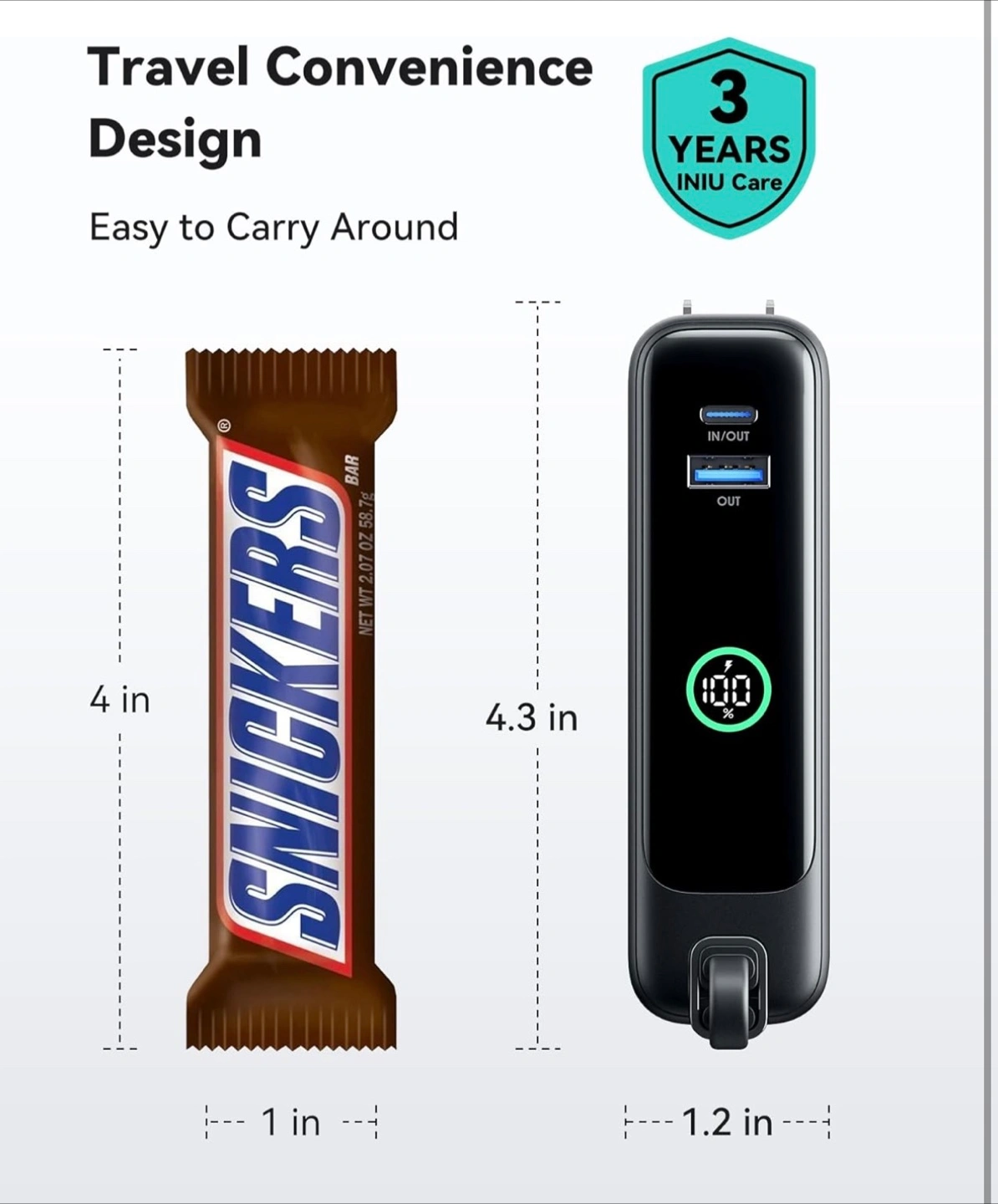 Power bank with built-in cable and extra ports. Compact design for easy carrying. This handy device will keep you connected wherever you go.