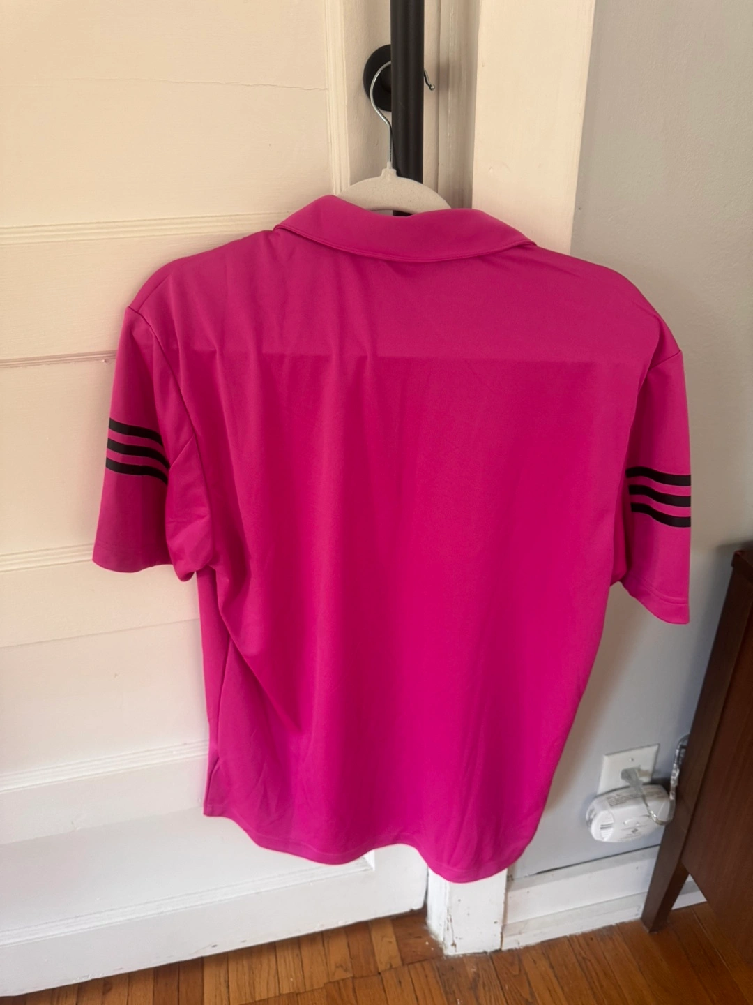 NWOT. A stylish pink polo shirt. Features short sleeves and a collared neckline. This shirt is perfect for staying comfortable while running errands. Reasonable offers too low will be ignored and serious buyers.