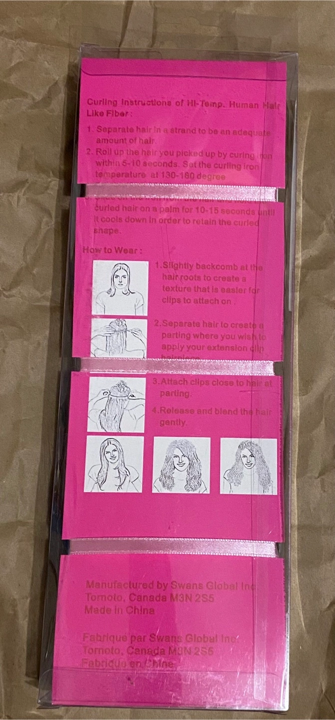 Hair extensions with instructions on the packaging. Made in light and strawberry colour. Perfect for a quick hairstyle transformation.