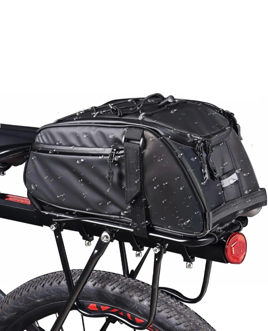 Bike Rear Bag Reflective,Waterproof Bicycle Pannier Rack Bag Cargo Trunk Storage Cycling Carrier Chest Bag,8L Capacity with Multi Pocket Taillight Loop,Shoulder Strap for Outdoor
