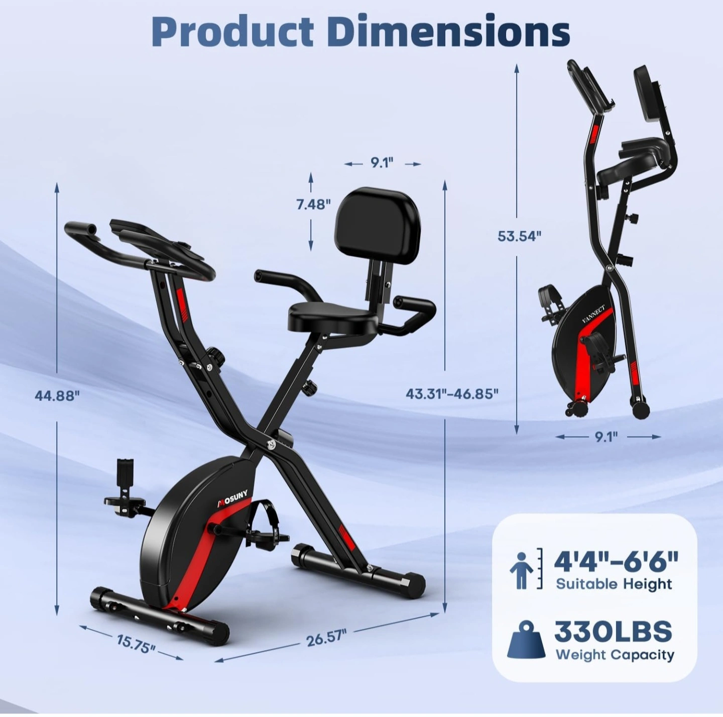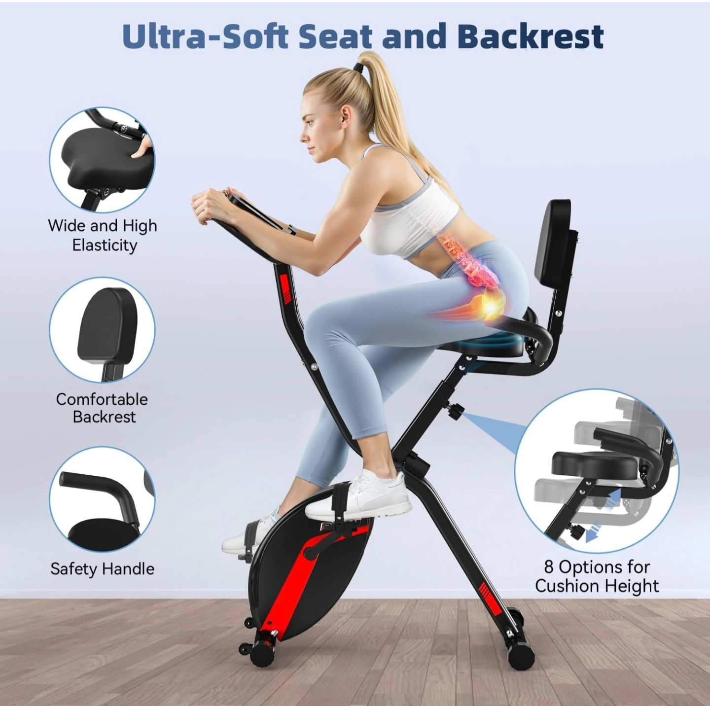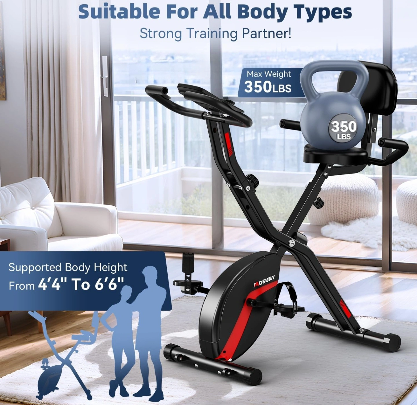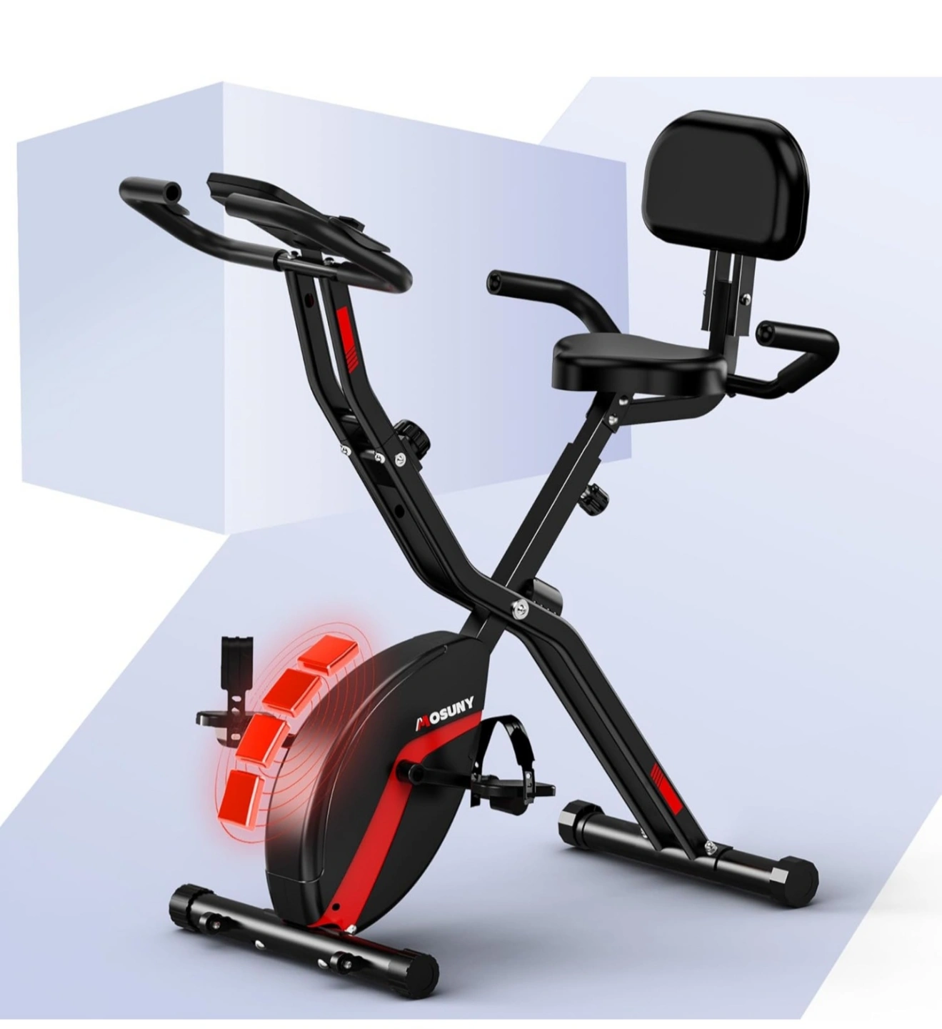 Black and red stationary exercise bike. Featuring a seat and backrest. Adjustable resistance levels. A great addition to your home for a relaxing workout. Unopened! pickup only