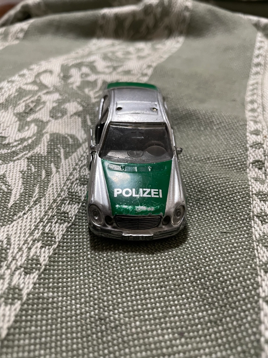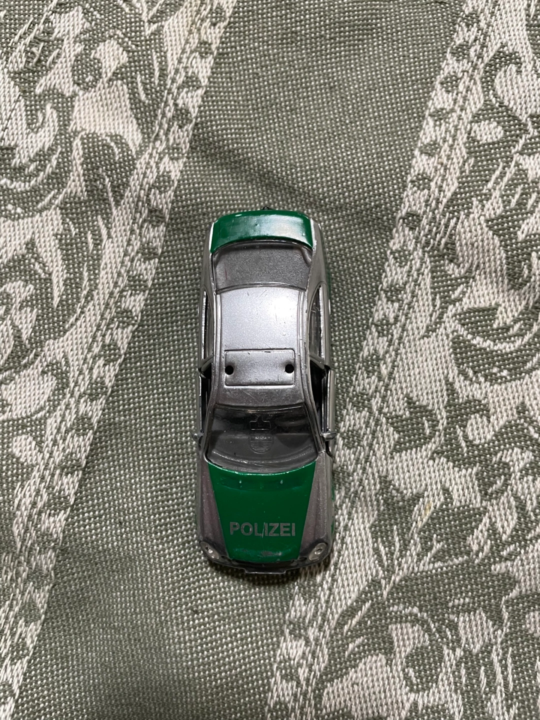 Silver and green police car. Features the word "POLIZEI" on the side. A delightful toy for anyone to enjoy. Polizei is German for Police