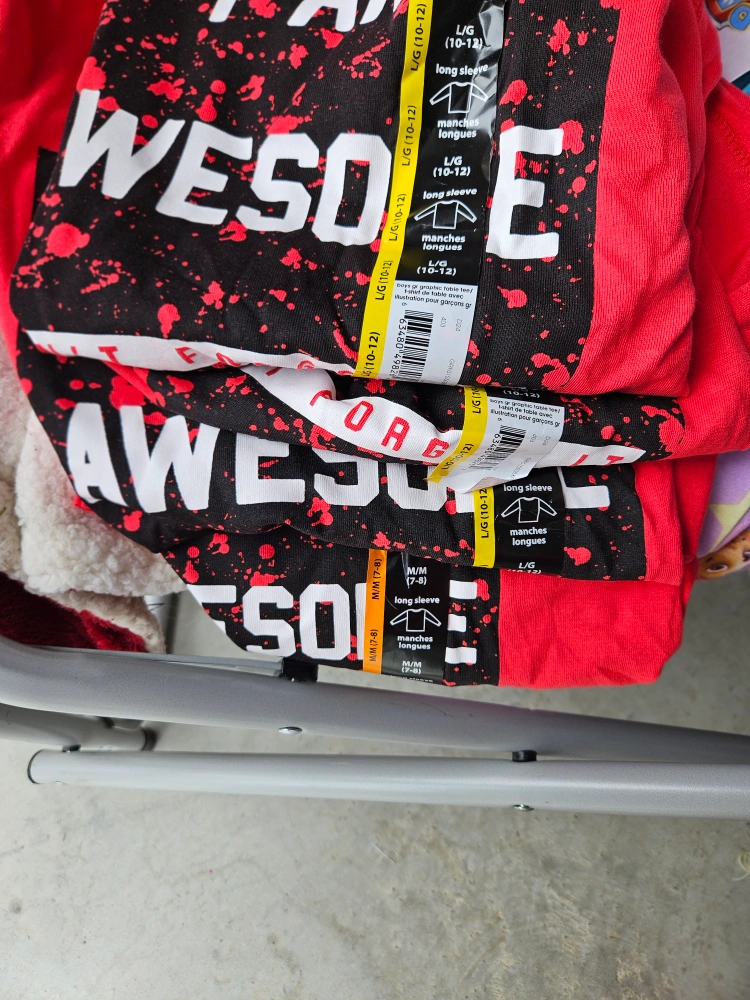 Bright red long-sleeve shirt. Bold white lettering with black splatter design. "I am awesome" is printed on the front. Great for staying cozy on chilly days.
