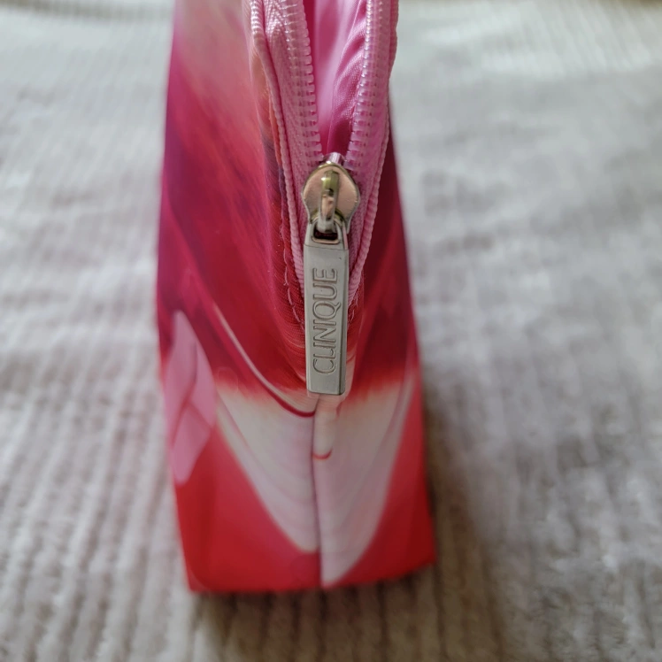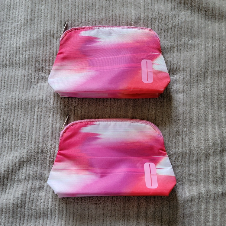 Set of two pink cosmetic bags by Clinique. Stylish and vibrant design.