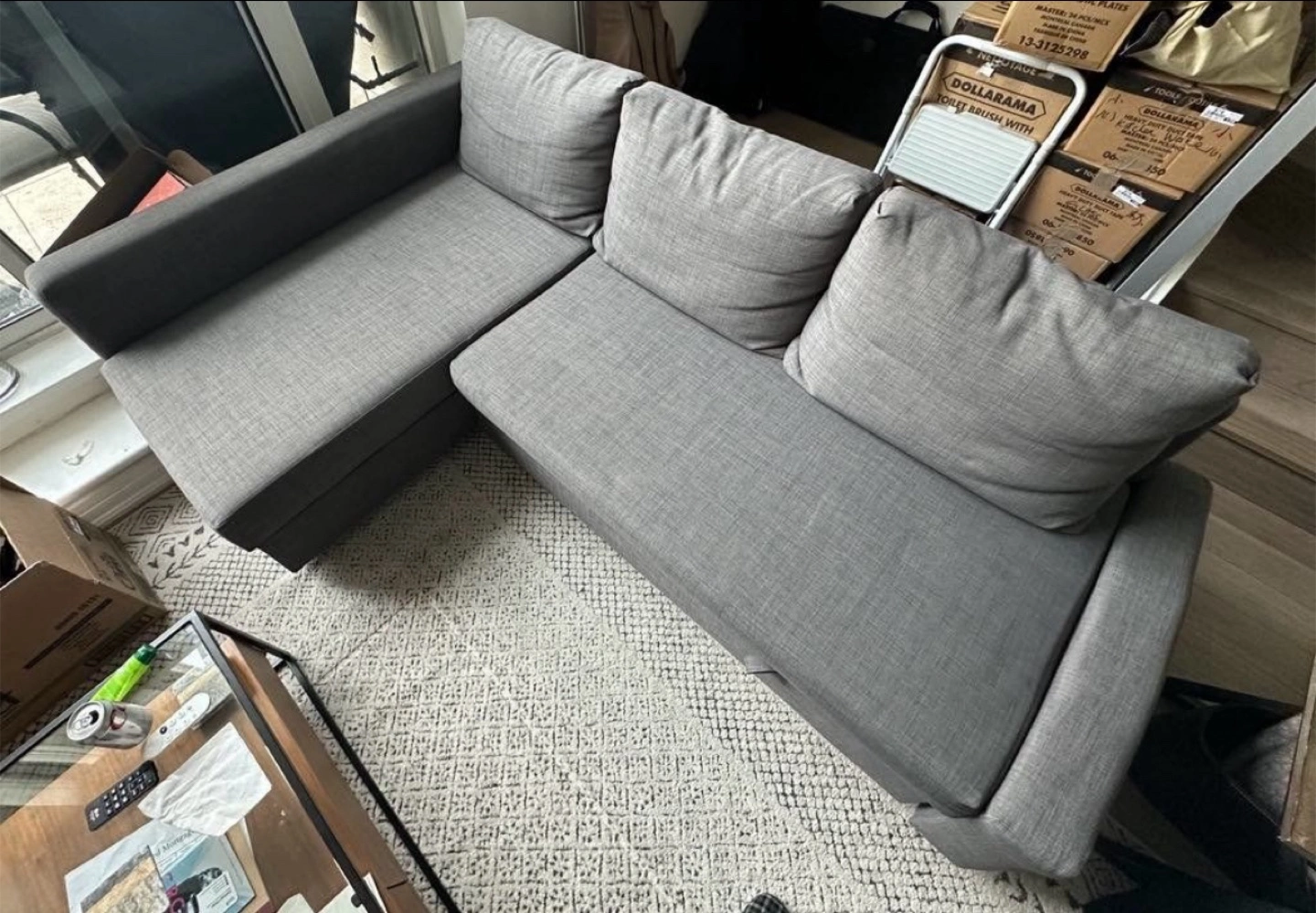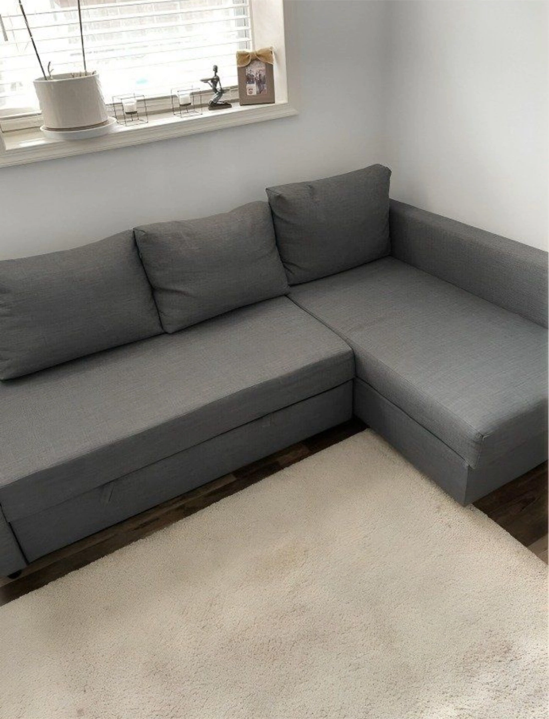 Selling this grey Ikea Friheten sofa futon. Very comfortable, it's used but has been maintained in very good condition. It also has a good amount of storage that can be used for blankets, pillows, etc.