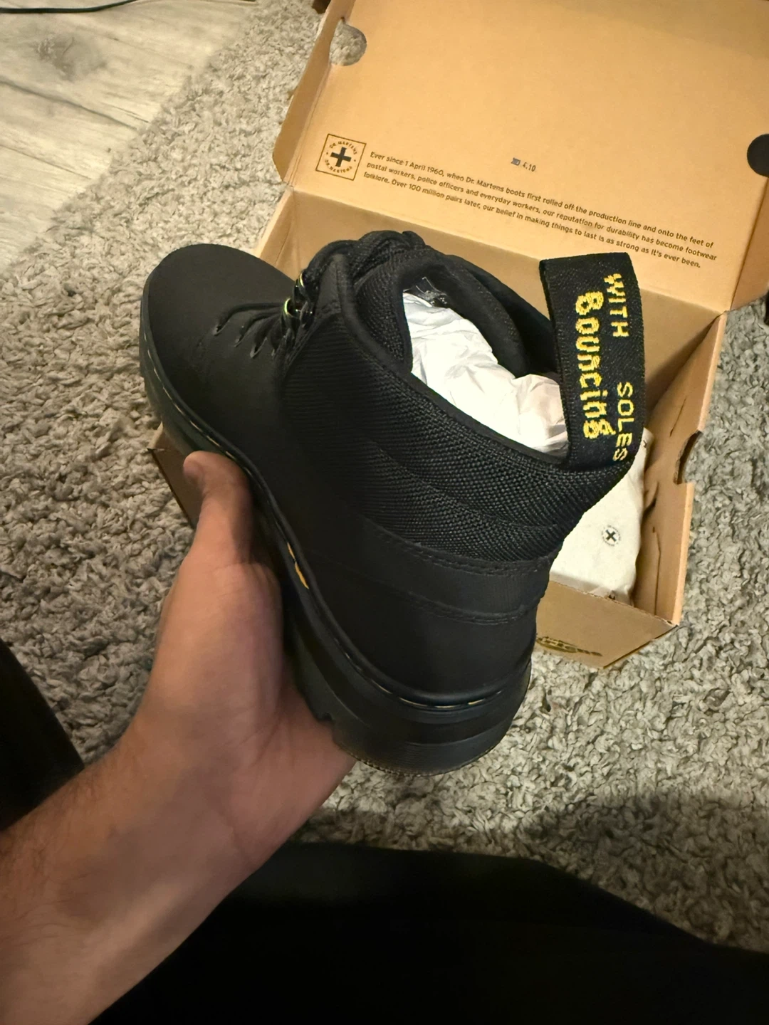 Selling a brand new pair of Dr. Martens Rakim boots in black,