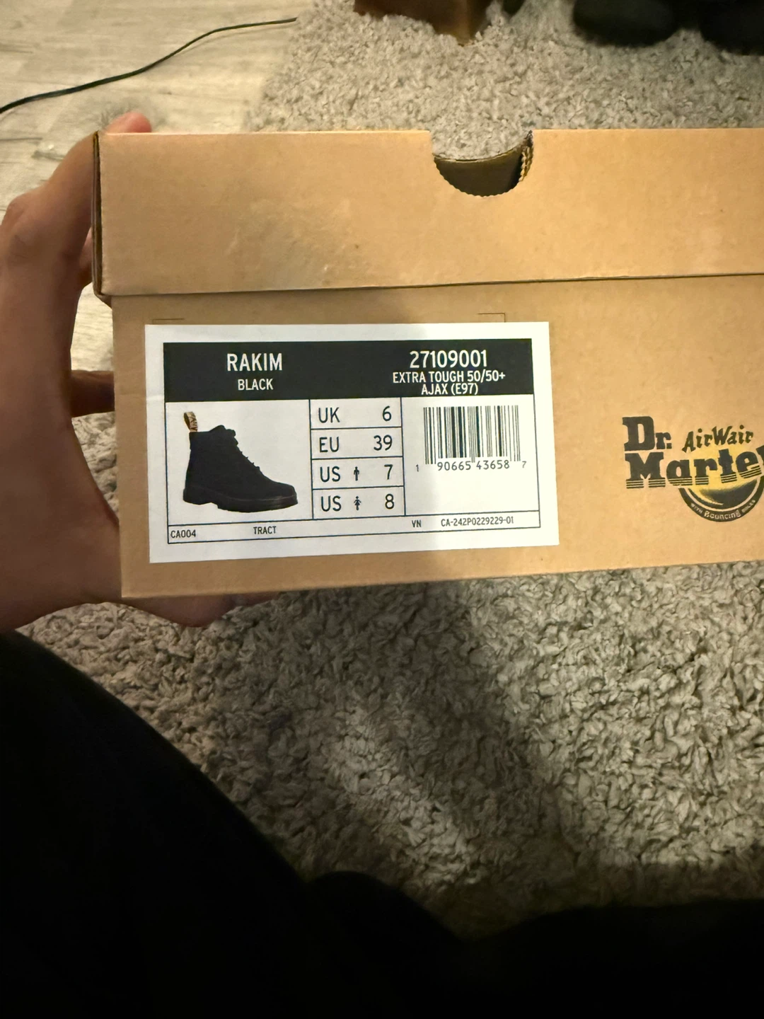 Selling a brand new pair of Dr. Martens Rakim boots in black,