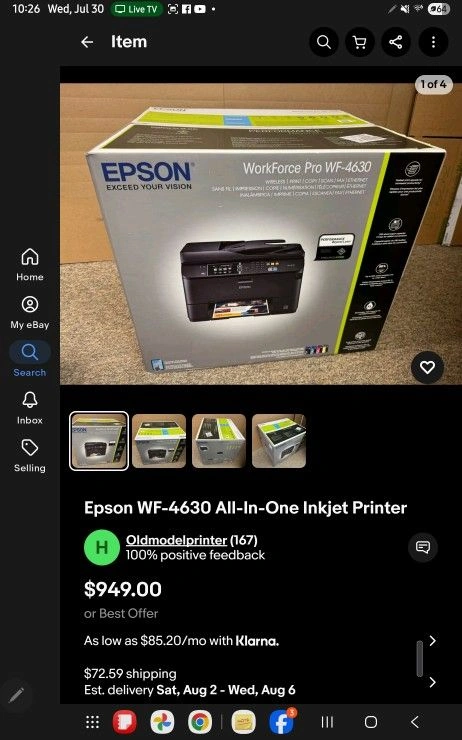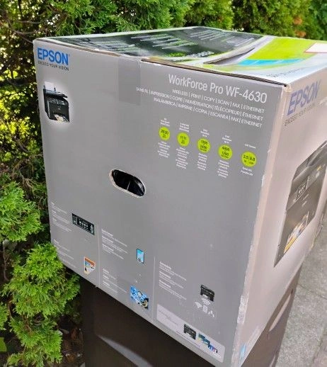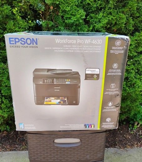 Selling a brand new, heavy-duty Epson WorkForce Pro WF-4630 All-in-One Printer. It's a 4-in-1 with Wi-Fi: Print, Copy, Scan, and Fax. Everything you need in one package. This printer is new in the box. Some websites list this model for up to $900. You will love this printer. It's not the cheapest, but it's heavy-duty and has all the functionality you need for a small office or work. Use it at home or in the office. It's quite fast, especially compared to other printers. This Epson printer is excellent. You will love the jumbo ink cartridges, which seem to last a long time. Duplexing works nicely and is fast. The automatic document feeder is a bonus when scanning or copying. Highly recommended if you require these features. Overall, a wonderful printer for fast, colorful documents at a reasonable initial buy-in and operating cost. Supports automatic 2-sided printing, scanning, and copying. Initial setup and software are excellent, allowing easy setup over USB, Ethernet, and Wi-Fi. It has a high duty cycle for business environments where you will be printing a lot. Ink cartridges are easy to change, with optional XL sizes available. Text prints are great, and color prints are above laser printer quality. Speed is fantastic for an inkjet. Bottom line: a fantastic office printer with intuitive buttons and software, easy to use for everything. It really does it all, aside from photo printing. Photo print quality is not ideal. Powered by Epson's PrecisionCore printing technology, this printer delivers Performance Beyond Laser. Produce professional print-shop-quality color prints and laser-sharp black and color text. Save on ink; get lower printing costs compared to color laser. This wireless printer easily prints from tablets and smartphones. The WF-4630 is durable, with a 30,000-page monthly duty cycle. It has a large 330-sheet paper capacity, including an 80-sheet rear tray for envelopes or specialty paper. Additional features include auto 2-sided print/copy/scan/fax, a 35-page 2-sided Automatic Document Feeder, and a 3.5" color touchscreen.