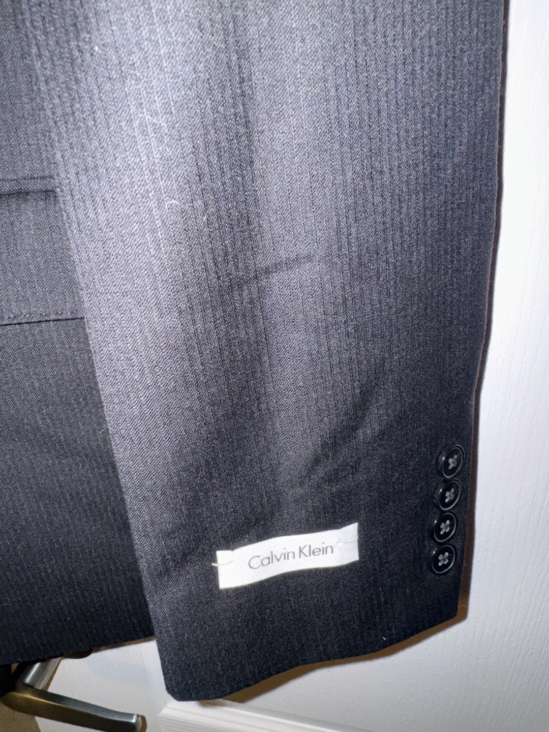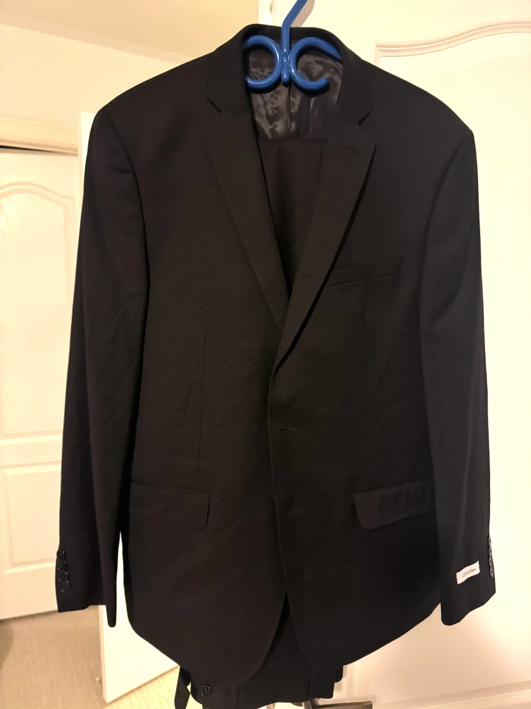sell this brand new Calvin Klein suit. It's a stylish black colour and made of 100% wool. The jacket is a size 44 and the waist is 38”. Originally bought for $525!