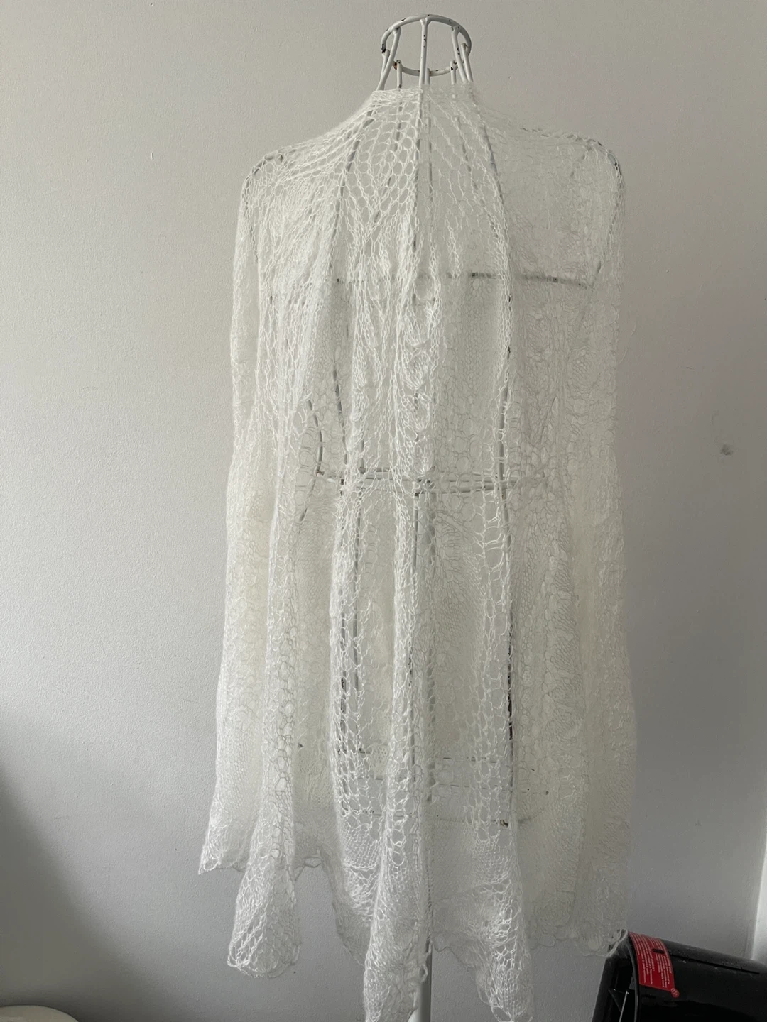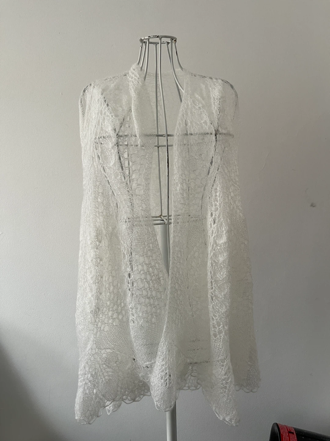 Selling a beautiful white lace shawl. It is in excellent condition and would be perfect for a special occasion or to add a touch of elegance to any outfit. The delicate lace detailing is stunning!