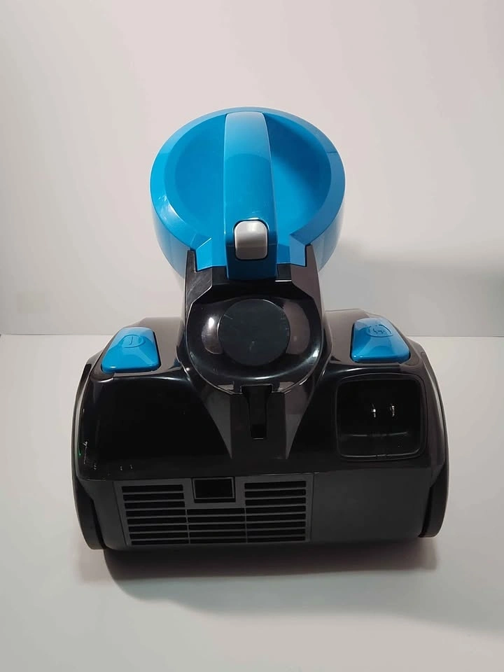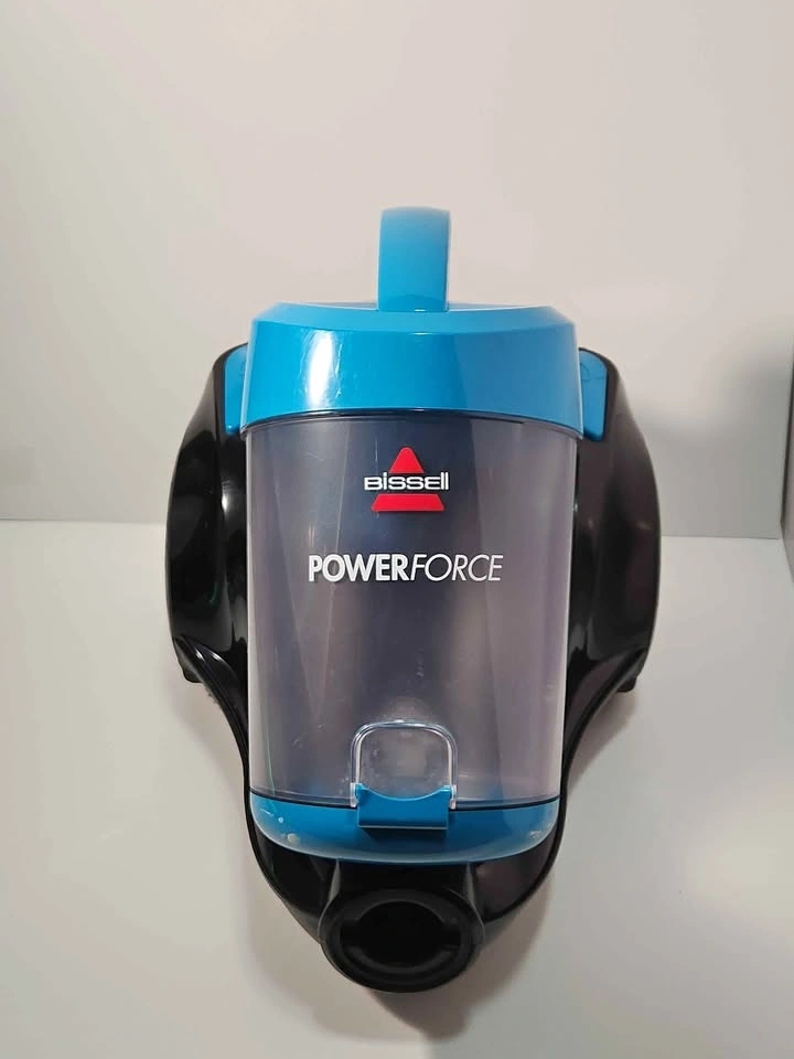 Compact Bissell PowerForce canister vacuum in black and blue. It's bagless and easy to empty, great for quick cleanups. Comes with a retractable extension cord (approx. 15 feet), hose, wand, and floor head. Pick up location is between Sheppard and Jane Street.