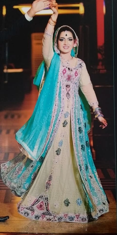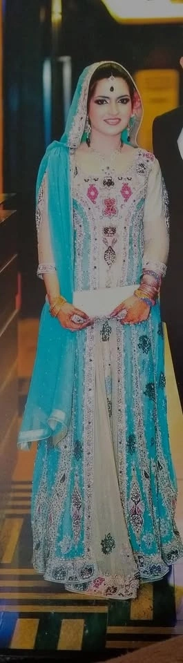 Gorgeous wedding walima Maxi dress in beautiful pastel blues and greens. The dress is filled with intricate details. Size small.