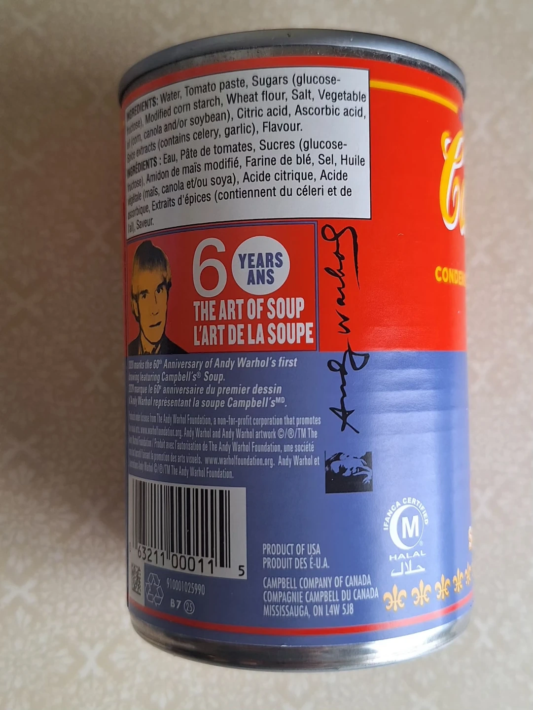 Buy & SellCampbell's Tomato Soup - Limited EditionCampbell's Tomato Soup - Limited Edition$150 Campbell's Tomato Soup. Limited edition featuring Andy Warhol artwork. Can is has not been opened. WHERE TO MEETBurnhamthorpe Mall - ShoppersView MapSELLERSarahMarkland Wood878 reviews0 chats·0 favorites·43 viewsSEND CHAT TO SELLERHi Sarah! I’m interested in your listing.Hi Sarah! I’m interested in your listing.Get the Karrot app to chatSign In to chat