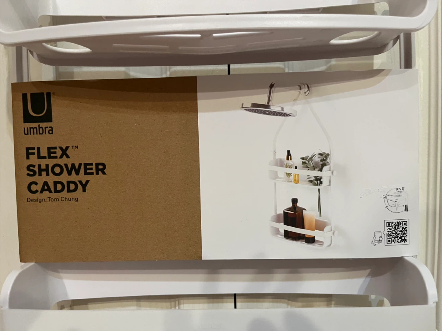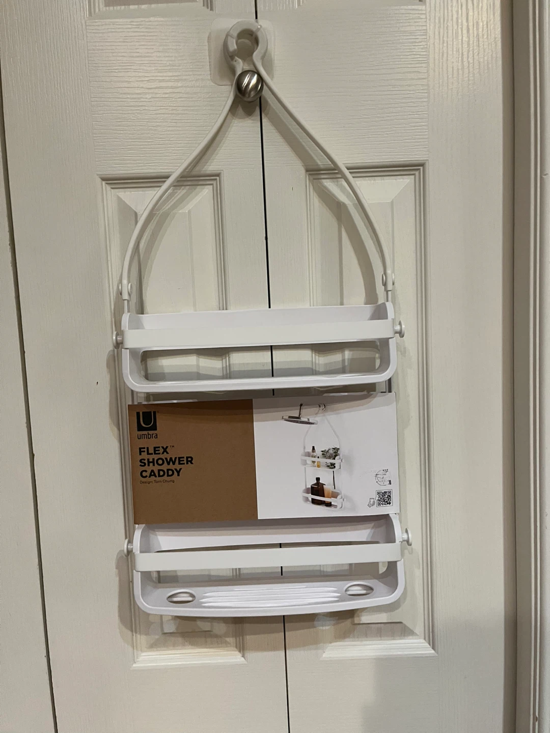 Brand New! Umbra Flex Shower Caddy is designed to hang over your shower head or door. It features three tiers for storing toiletries. White plastic construction.