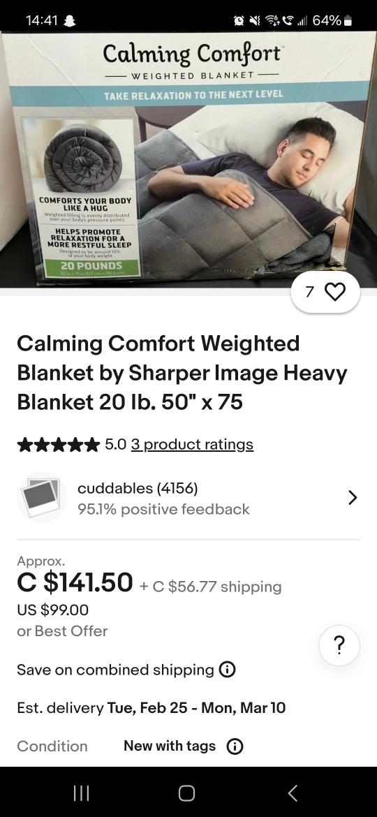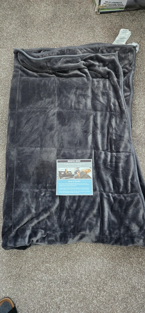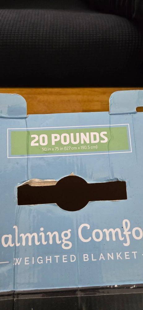 It's delightfully heavy. I used it one night on top of my comforter, and I found it to not be a good fit for me. It has then been sitting in the box in a closet since. Hence why the box is a bit beat up, my apologies!
