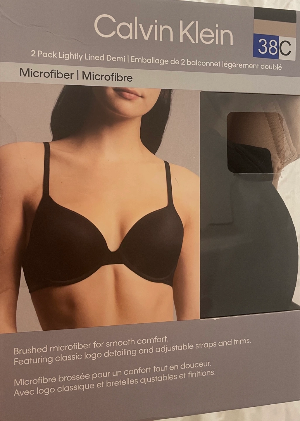 2 Pack Lightly Lined Demi bra, black. Brushed microfiber, adjustable straps and trims.