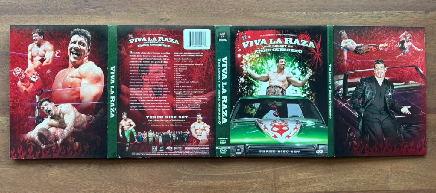 Selling a three-disc DVD set, Viva La Raza: The Legacy of Eddie Guerrero. It's a great collection for any wrestling fan! The set comes in its original packaging
