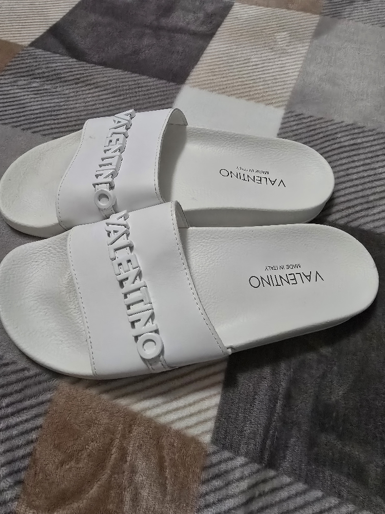 Selling a pair of Valentino white slides in size 43. These slides are in good condition and perfect for a casual, stylish look. Made in Italy!