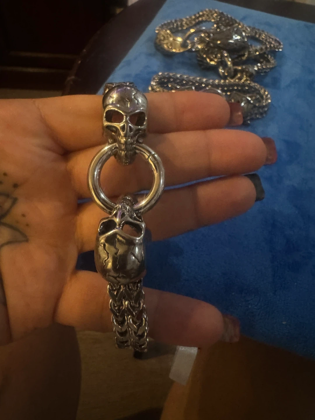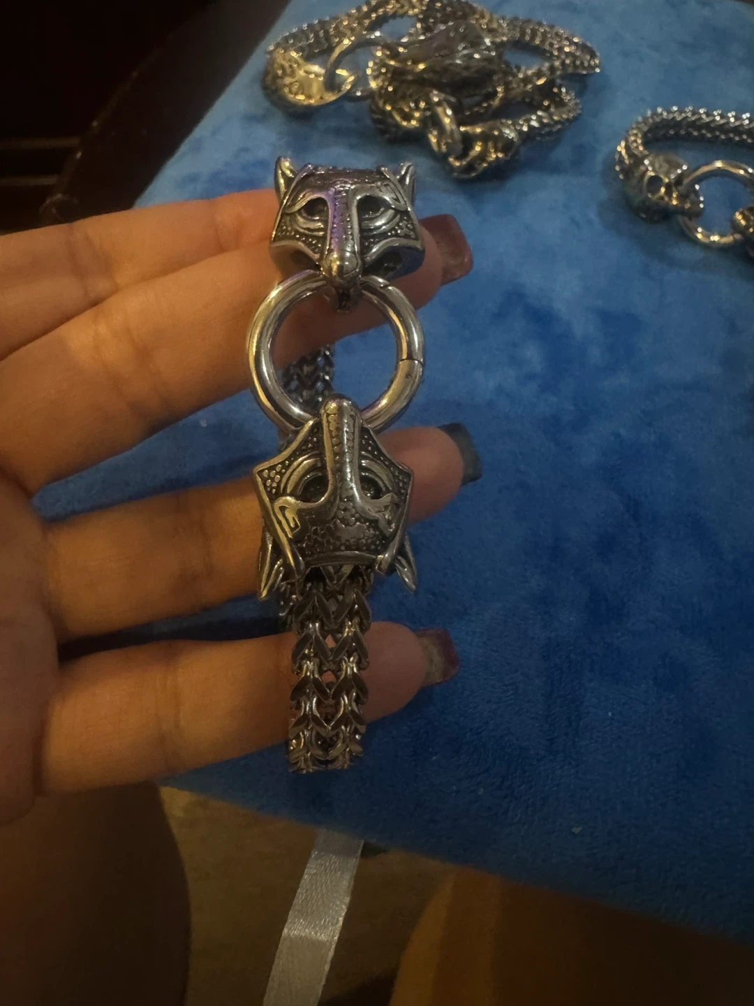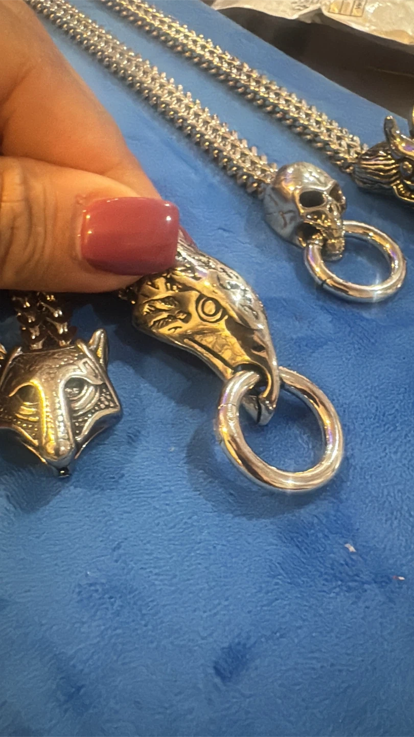 Here are some cool stainless steel bracelets . I have different animals a lion , eagle. Snake, fox ancient dragon. Skull very popular nowadays beautiful look adorable. $15 each.