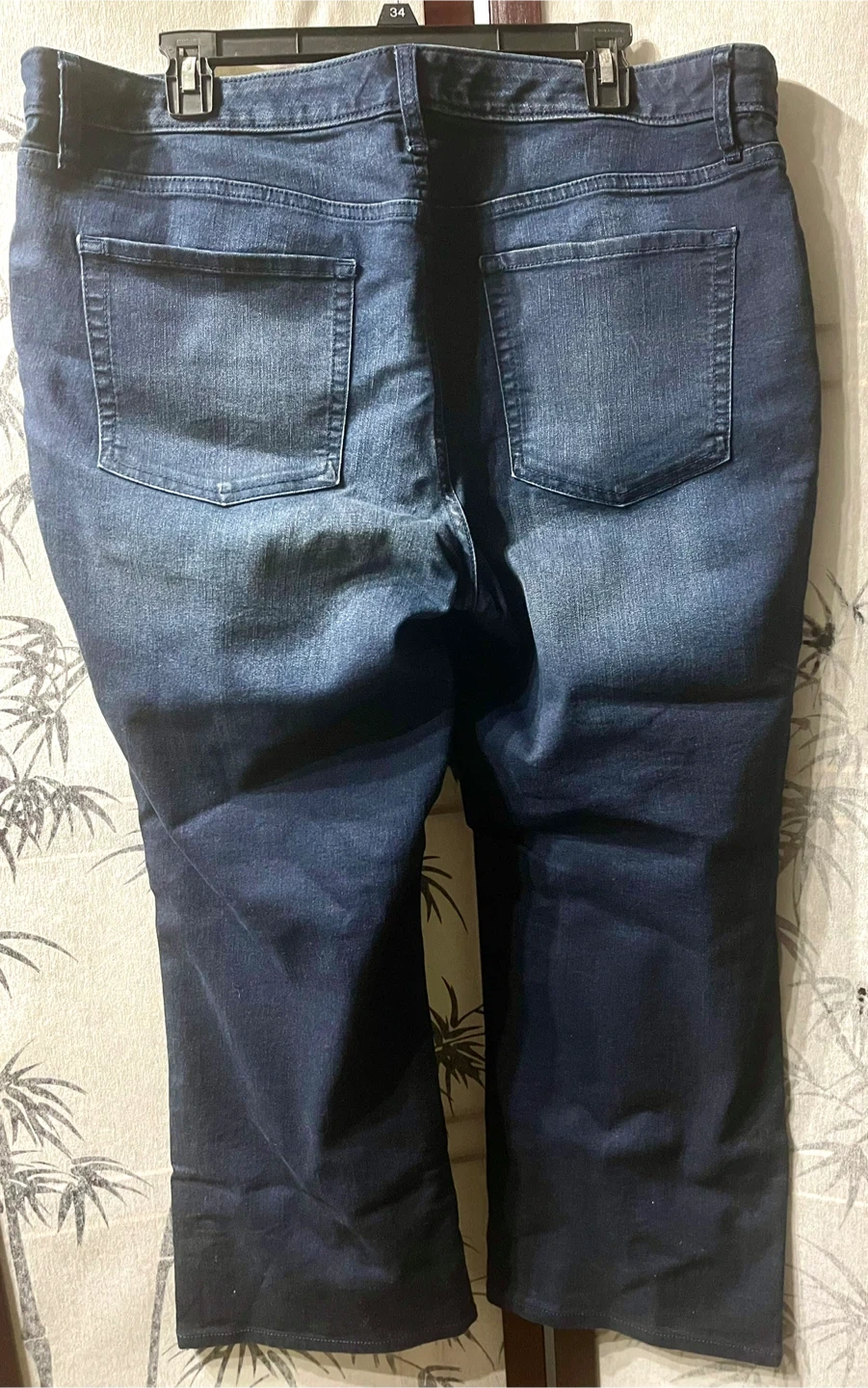 Ava & Viv Bootcut dark wash denim jeans. They feature a classic five-pocket design. The material is comfortable and durable.