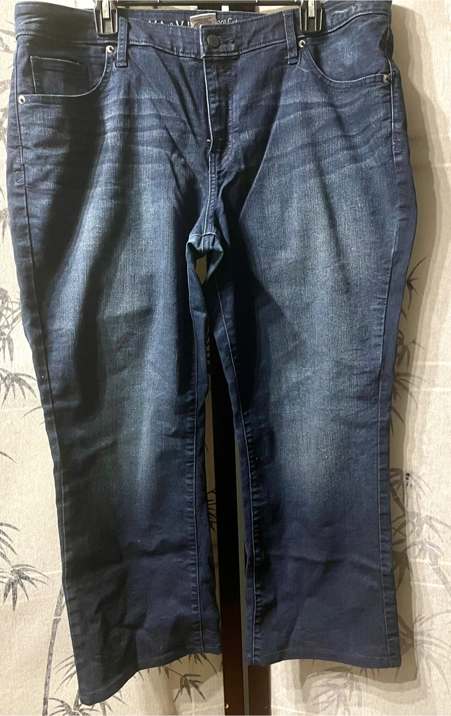 Ava & Viv Bootcut dark wash denim jeans. They feature a classic five-pocket design. The material is comfortable and durable.