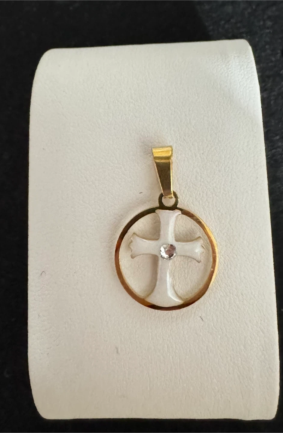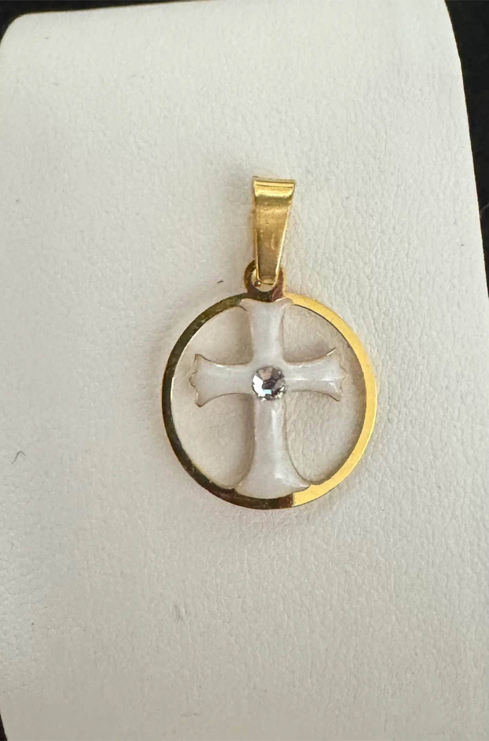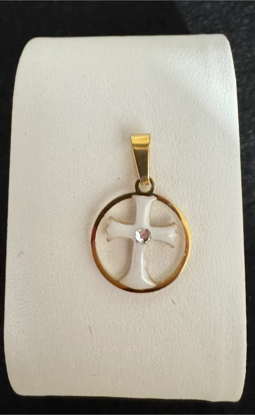 πSnow White Enameled Cross W Clear Gemstone