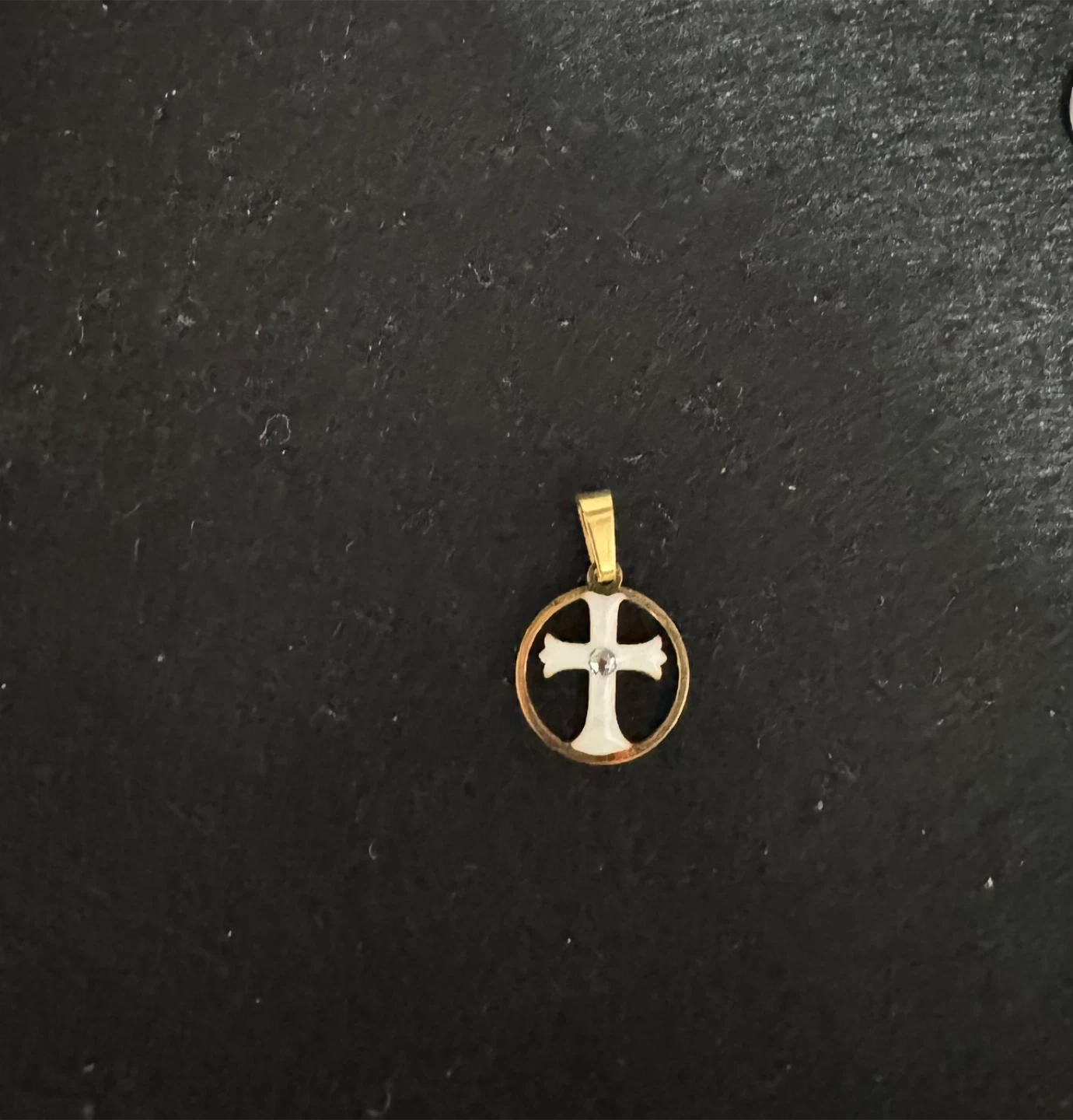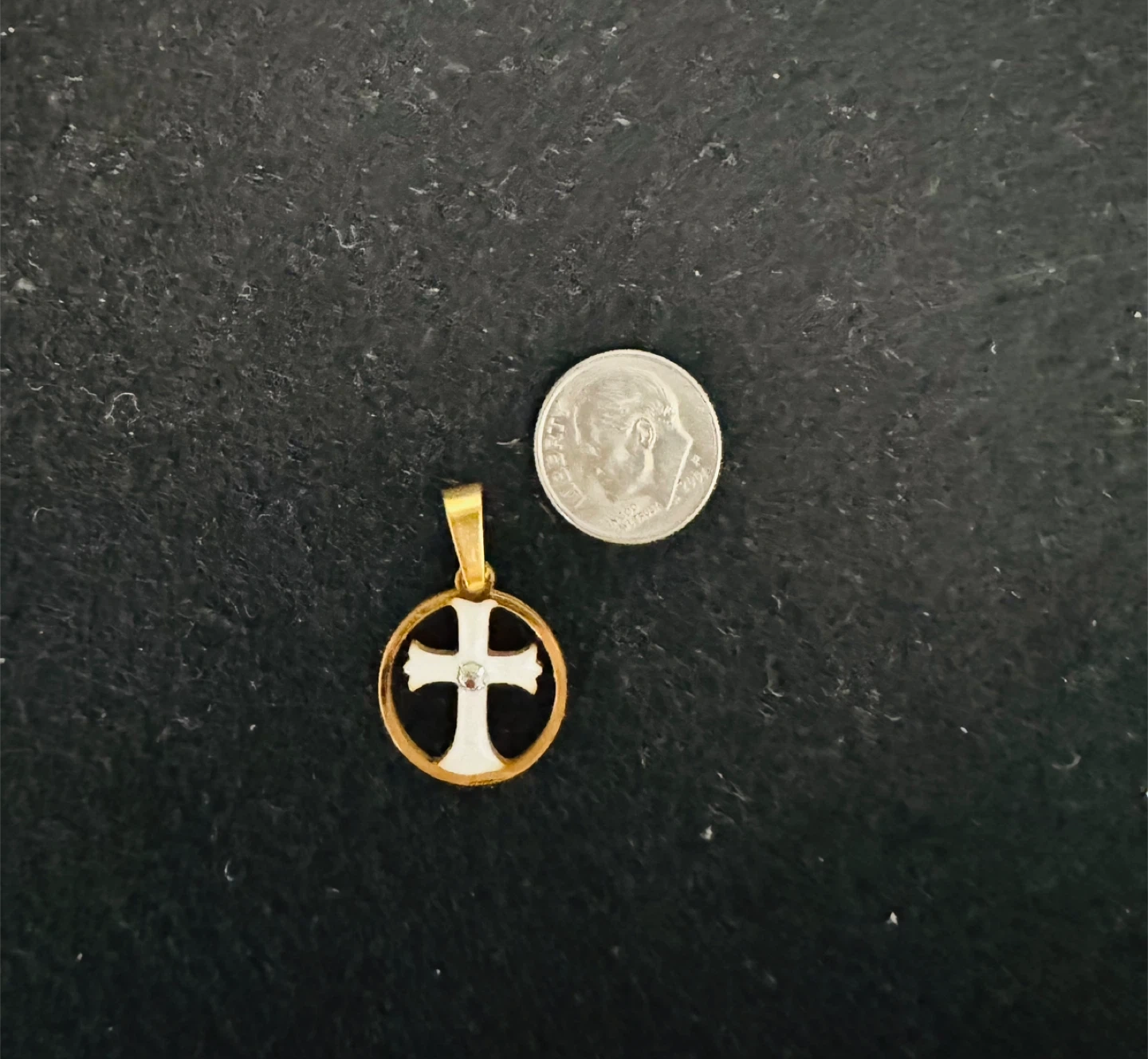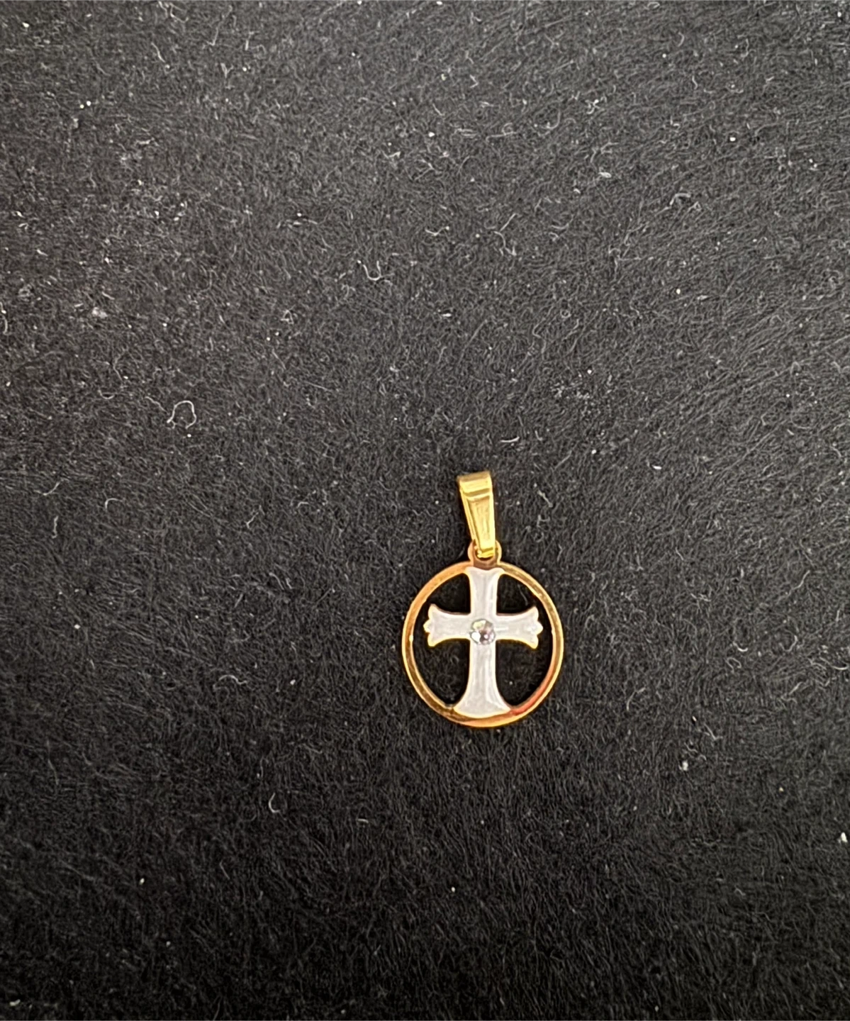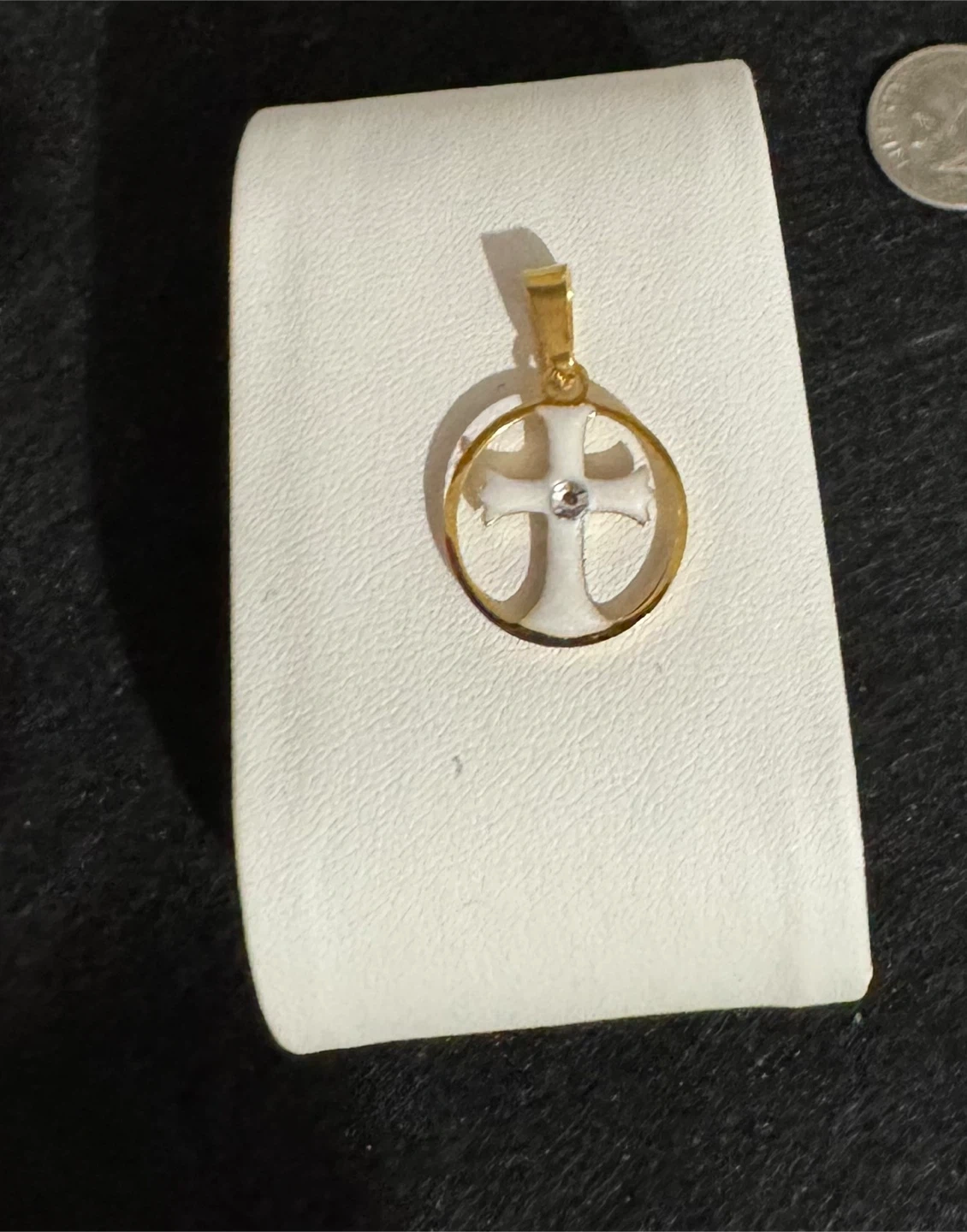 πSnow White Enameled Cross W Clear Gemstone