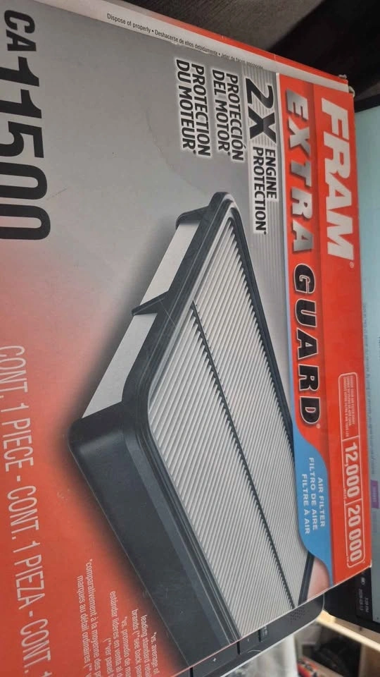 New AIR TECHNIK Cabin Air Filter with activated carbon. Part number 72880FL000. Features 3-stage filtration for particles, odors, and bacteria. Fits Subaru Ascent (2019–2024), Crosstrek (2018–2024), Impreza (2017–2023), Legacy (2020–2024), Outback (2020–2024), XV (2018–2022); Mazda CX-9 (2016–2023); Toyota Corolla (2019–2024), RAV4 (2019–2024), Prius (2016–2024), Camry (2018–2024), Highlander (2020–2024); Hyundai Santa Fe (2013–2018), Santa Fe Sport (2013–2016), Santa Fe XL (2013–2019); Kia Sorento (2014–2015). Cross-references: Subaru OEM 72880-FL00A, 72880-FL500; Fram CF12436; Wix WP10320; NAPA Gold 230320; Purolator C31434. Also available: Fram CA11500 for Hyundai Santa Fe (2013–2018), Santa Fe Sport (2013–2016), Santa Fe XL (2013–2019), and Kia Sorento (2014–2015). Both filters are unused.