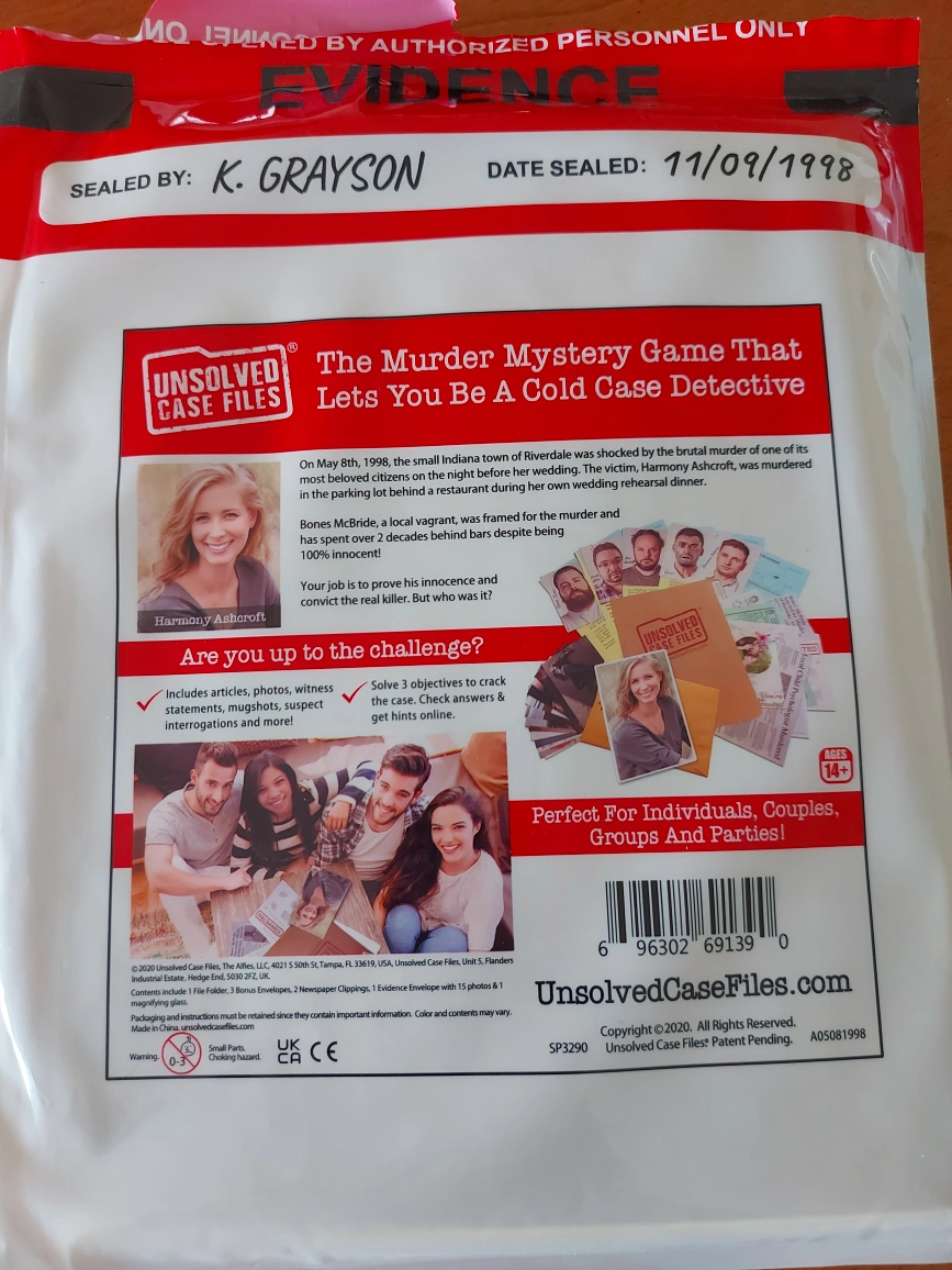 Dive into the world of mystery with this Unsolved Case Files murder mystery game that lets you be a cold case detective! This immersive game challenges you to solve a fictitious cold case using a variety of clues and documents. Perfect for individuals, couples, groups, and parties, it's an engaging activity that tests your detective skills.