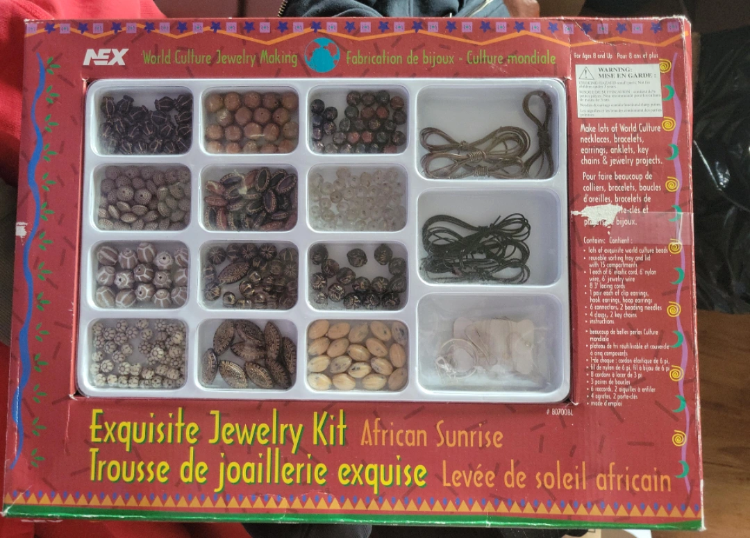 Jewelry kit filled with beads, cords, earring hooks and more. Great for creating your own jewelry.