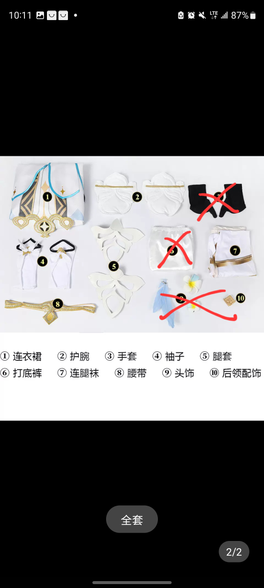 Includes a crimped wig, some accessories are missing (marked with an X -> thumb gloves, white shorts, hair accessories, whatever #10 is supposed to be??) however I included hair accessories I made myself with clay :)