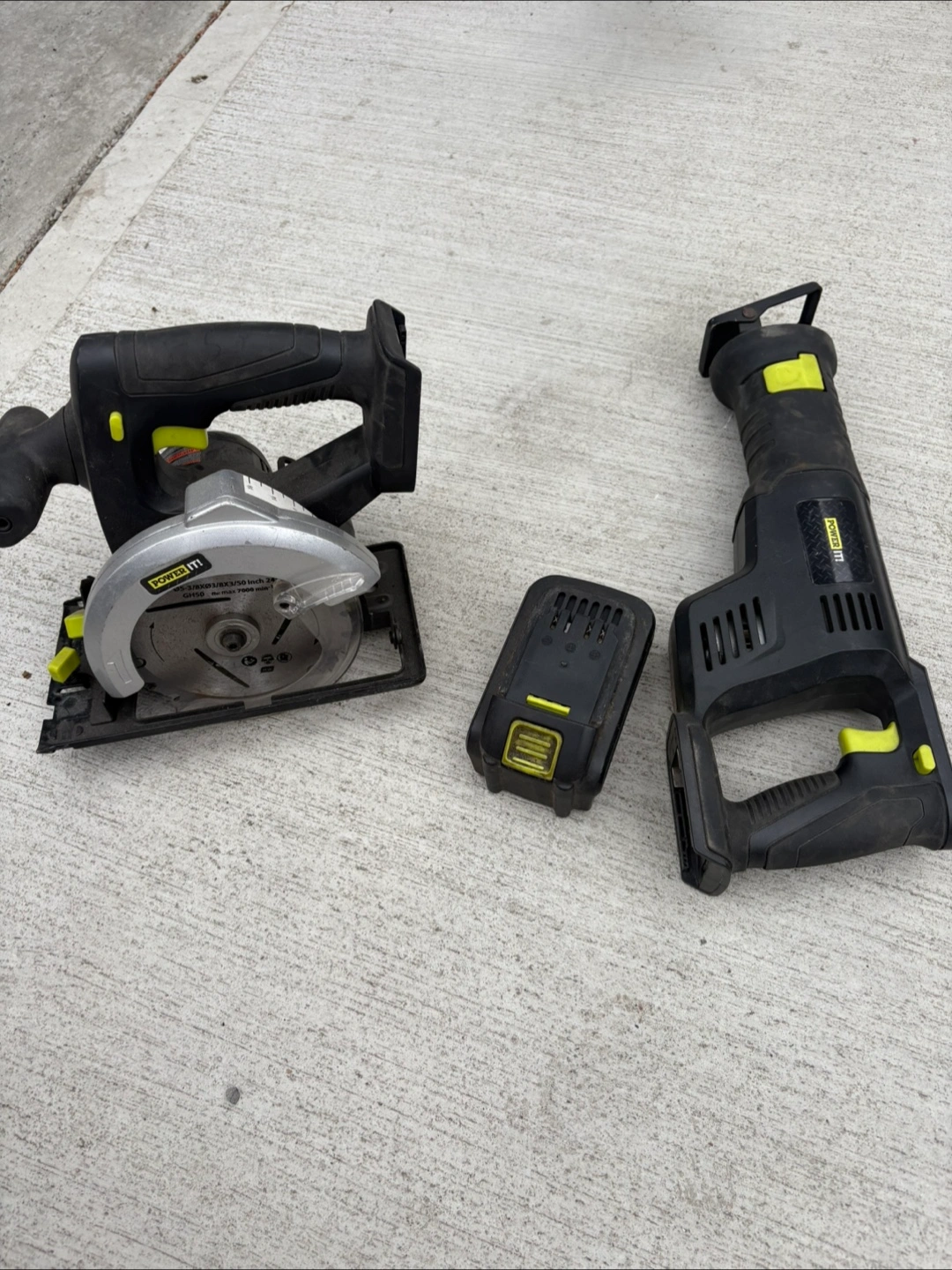 Comes with a circular saw, reciprocating saw, and a battery pack. Saws have a black and yellow design. These items can be used to build something amazing and relax your mind. I lost the charger that’s why am selling it, other than that everything is fine