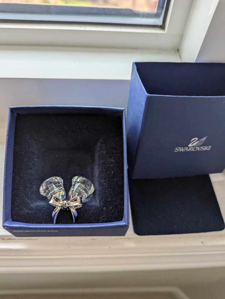 SWAROVSKI Figurine Crystal Memories Wedding Bells joined by Rhodium Plated bow.