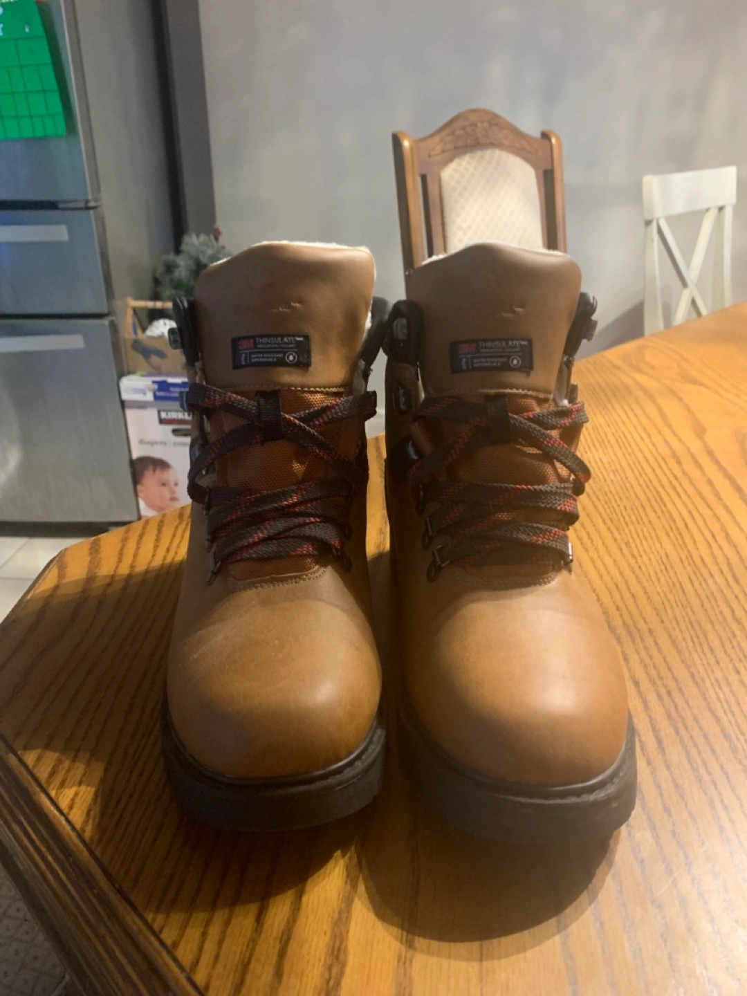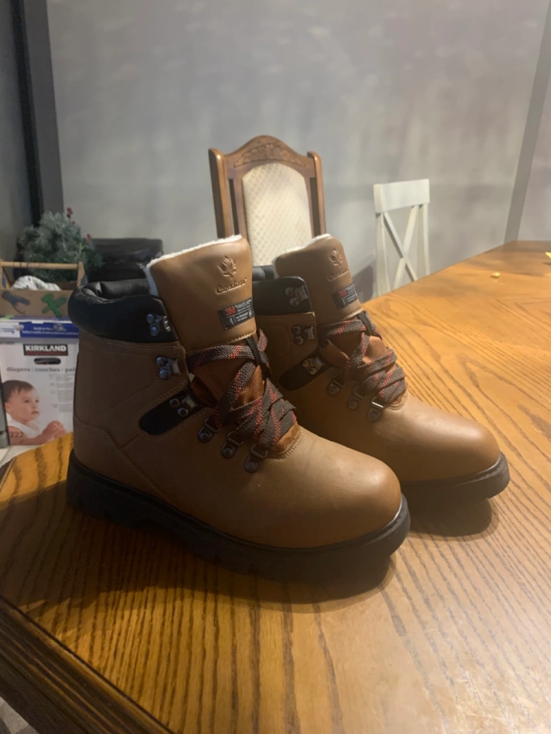 Winter Boots in brown tried on but never warn outside. They have laces with metal eyelets and the sole is sturdy. Paid $50 asking $40 obo.