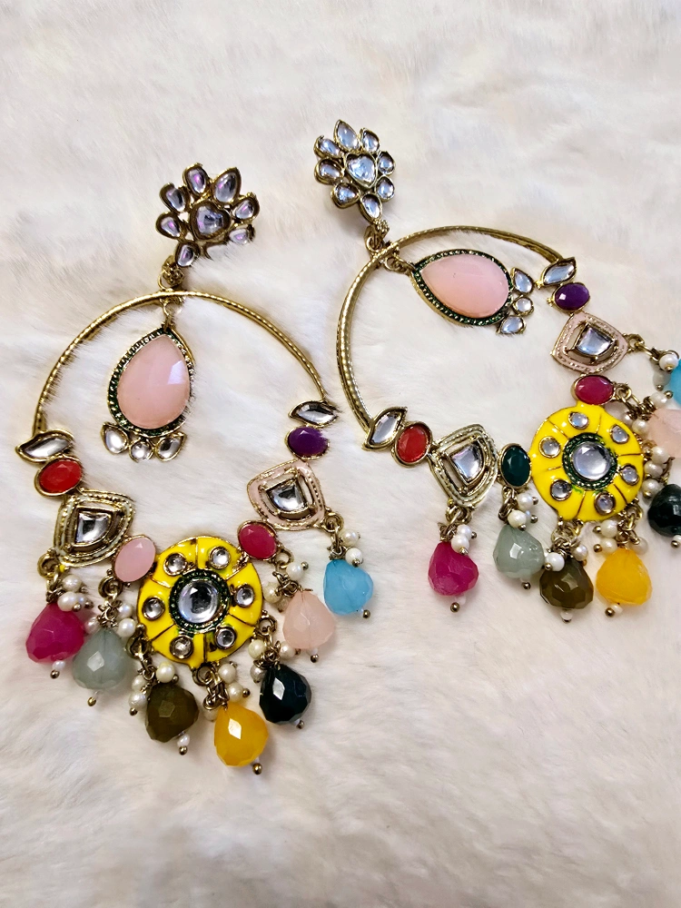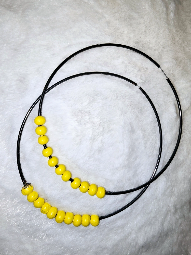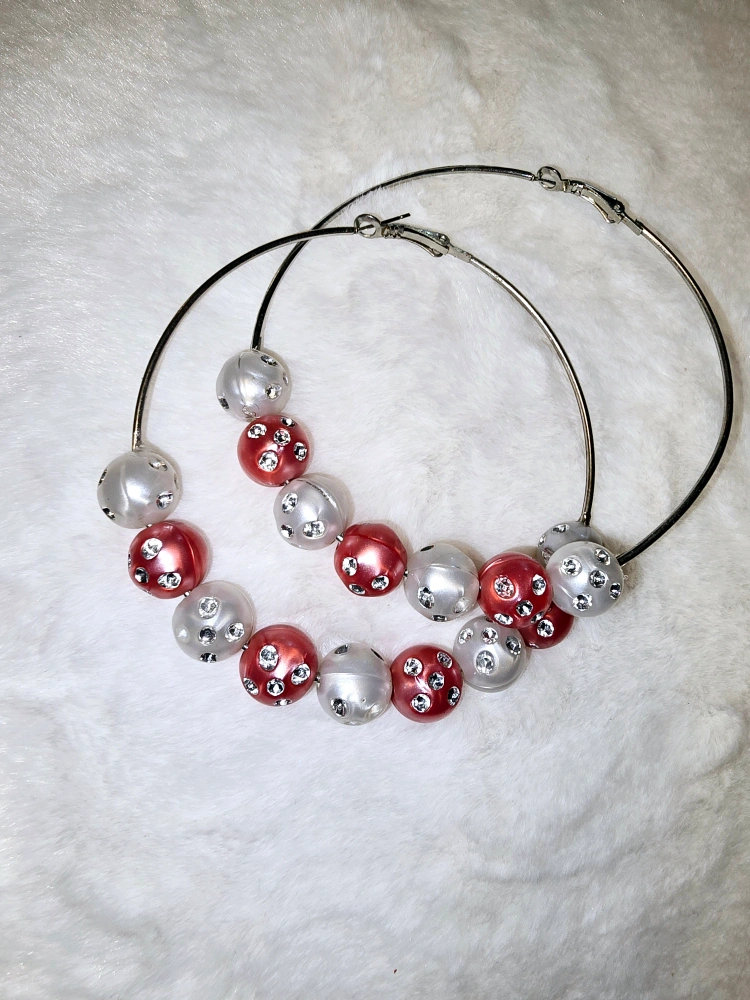 Beautiful hoop earrings with pink beads. The design includes clear rhinestones. Wearing these earrings will bring a sense of calm and joy to your day.