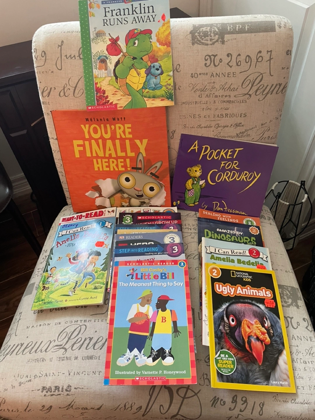 124A collection of several children's books. Included is Franklin Runs Away, A Pocket for Corduroy, and Finally Here and others. Books for early readers. Reading is a lovely way to wind down. Levels 1,2 and 3.