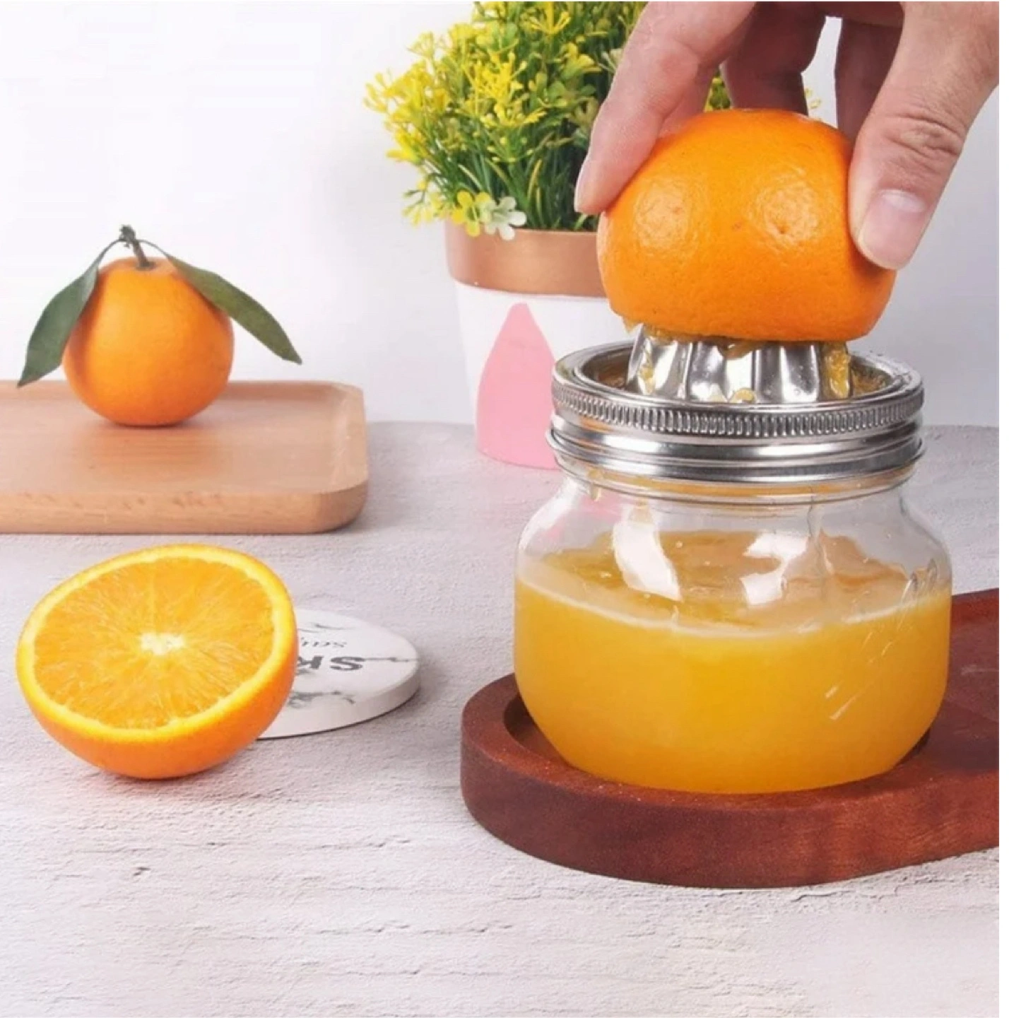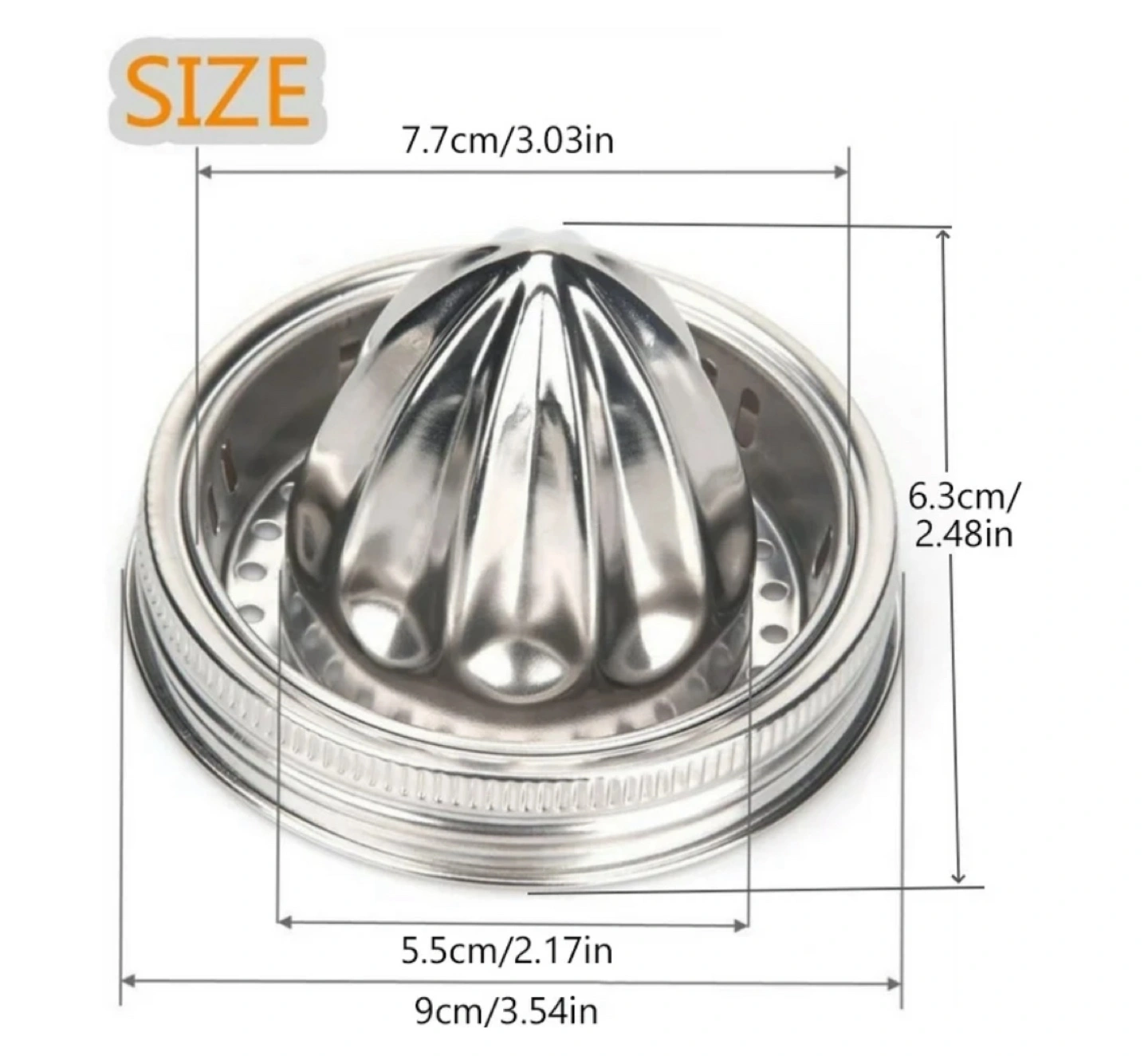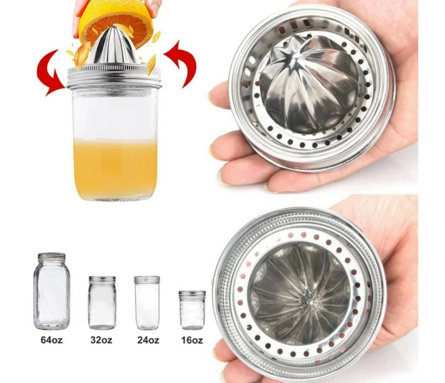This is a new stainless steel citrus juicer lid designed for wide mouth mason jars, perfect for juicing lemons, oranges, and other fruits directly into your jar. It's durable and easy to clean, making your juicing process a breeze.