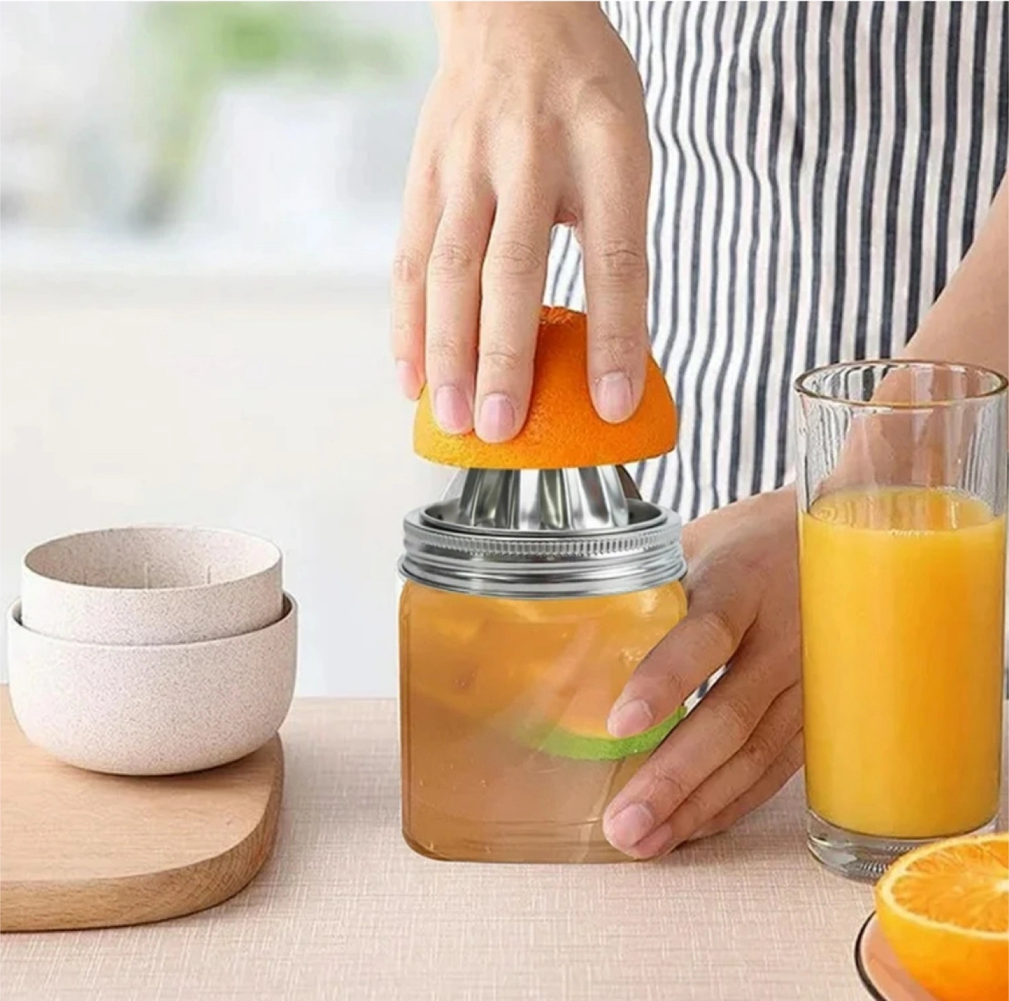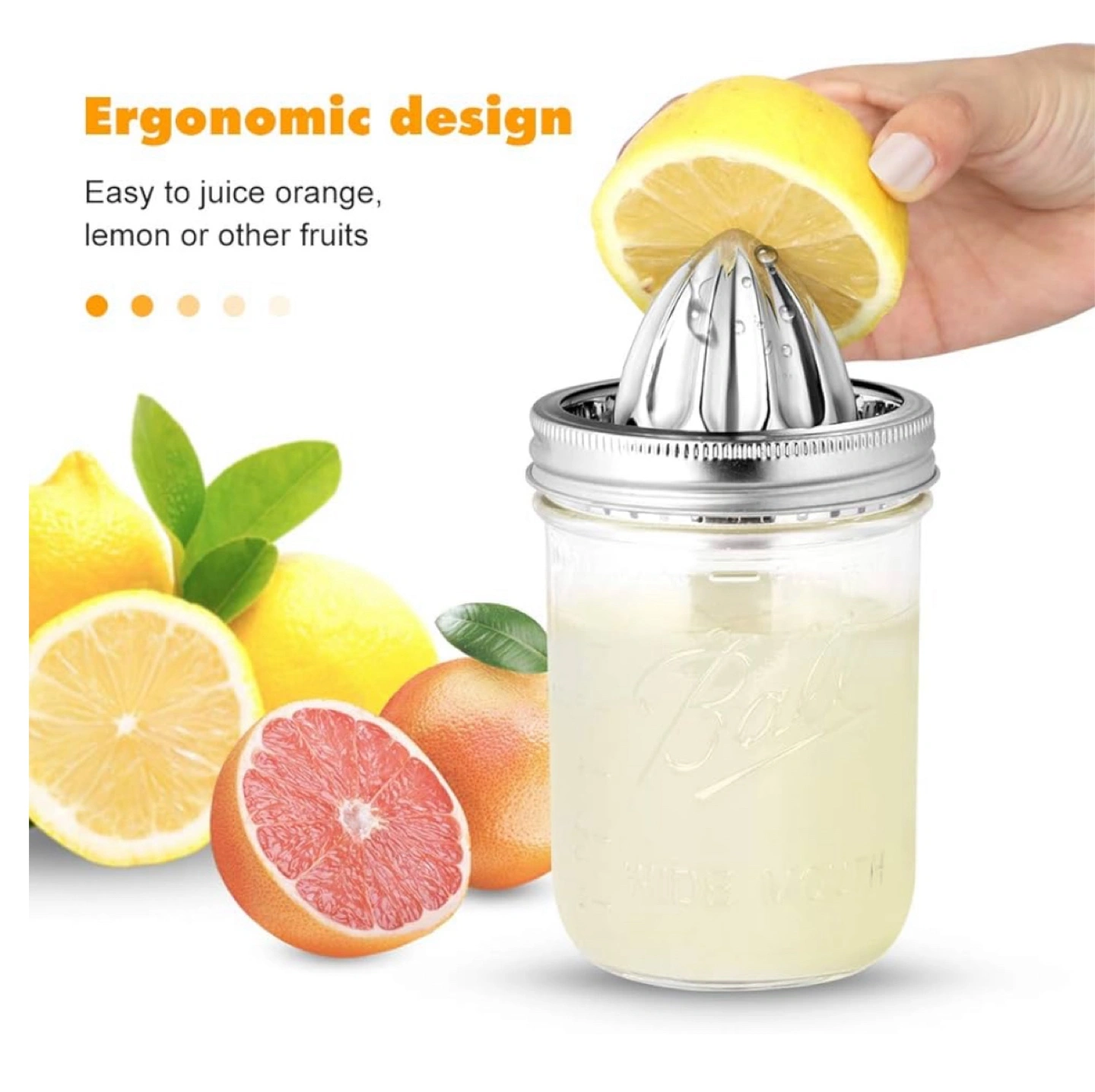 This is a new stainless steel citrus juicer lid designed for wide mouth mason jars, perfect for juicing lemons, oranges, and other fruits directly into your jar. It's durable and easy to clean, making your juicing process a breeze.