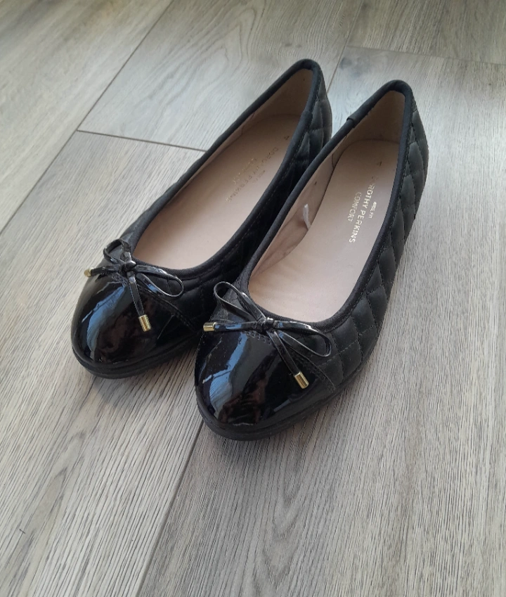 Black Dorothy Perkins ballet flats. Quilted with a bow detail on the front. These flats are wide fit and made to be comfortable.