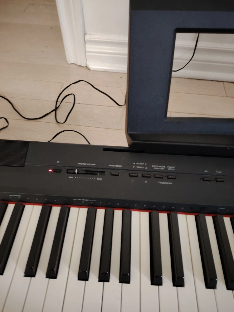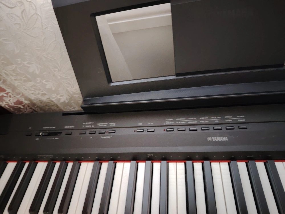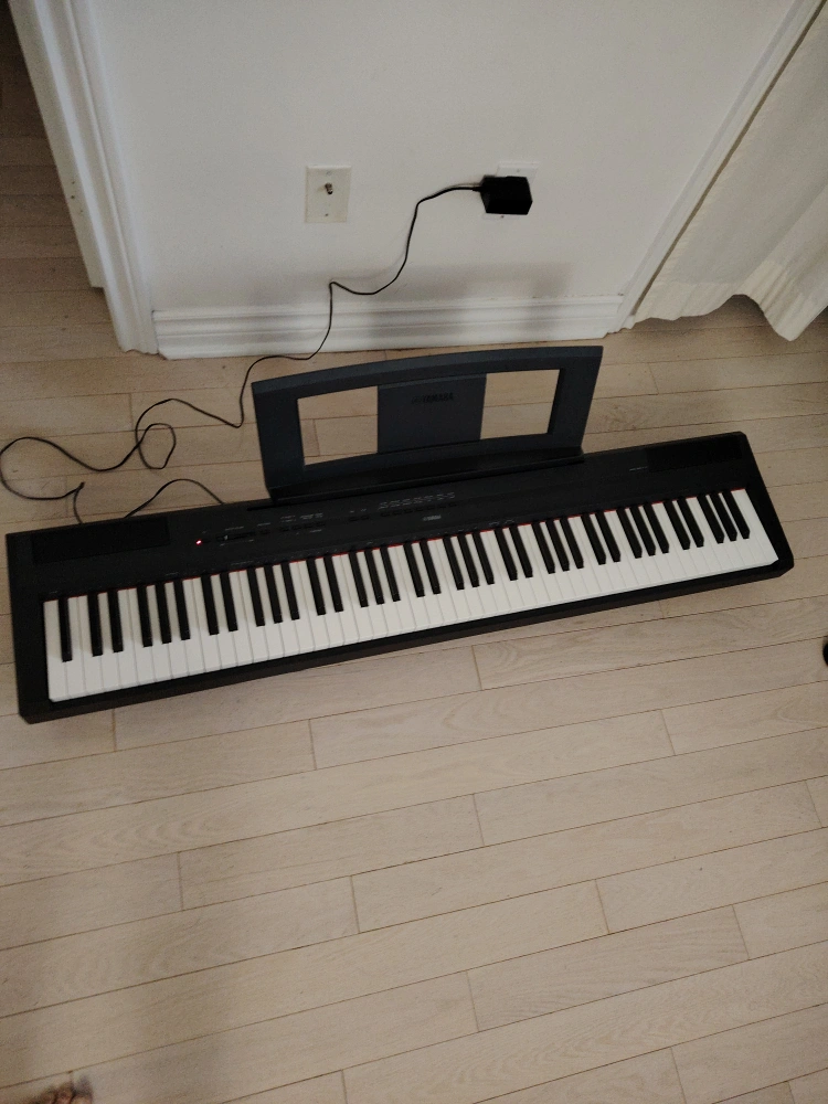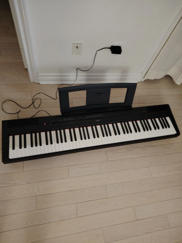 893YAMAHA black p115 digital keyboard,88 keys like real piano with many white and black keys perfect for beginners it including with stand and pedal features various buttons and functions. A music stand is included. I can imagine myself playing some soothing melodies on this, while looking out the window.Original $1500.Self pick up and Cash only .