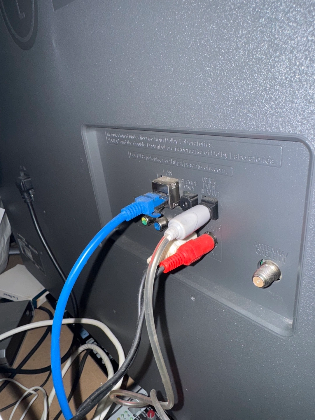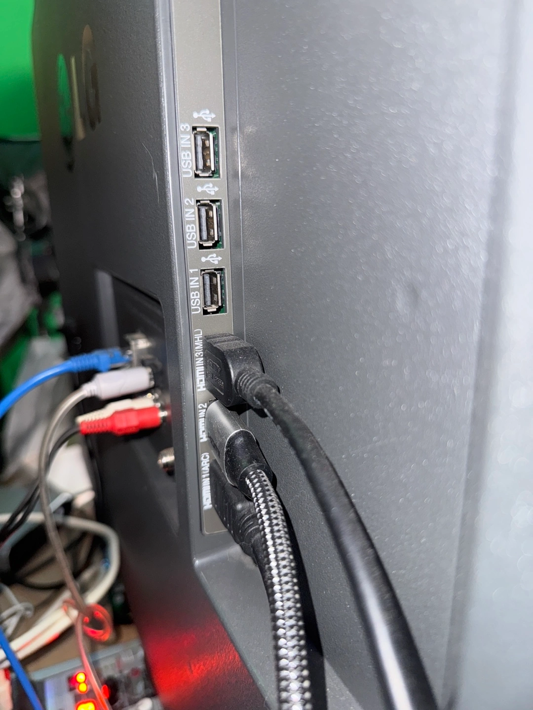 A large screen television, perfect for watching movies. Several USB and HDMI ports. The television comes with a variety of inputs.