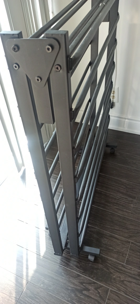 Black metal bed frame. The frame has a foldable design. It has rollers for easy moving. It is simple to set up and enjoy. You'll find it is a wonderful addition to your bedroom. slides easily under 14inch frame