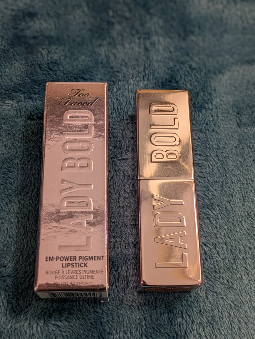 A Lady Bold lipstick from Too Faced, still in its original packaging. Em-power pigment lipstick. A great product for a night out, allowing you to feel glamorous.